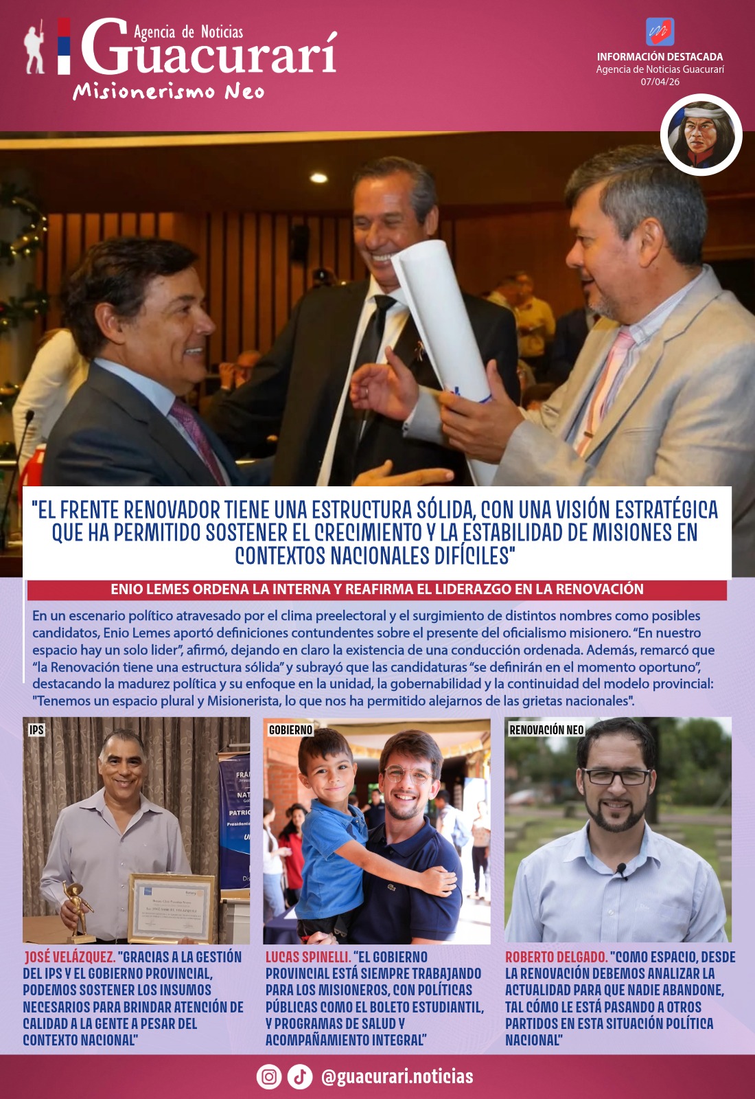 Enio Lemes: “La Renovación tiene una estructura sólida que ha permitido sostener la gobernabilidad, el crecimiento y la estabilidad de Misiones en contextos complejos»