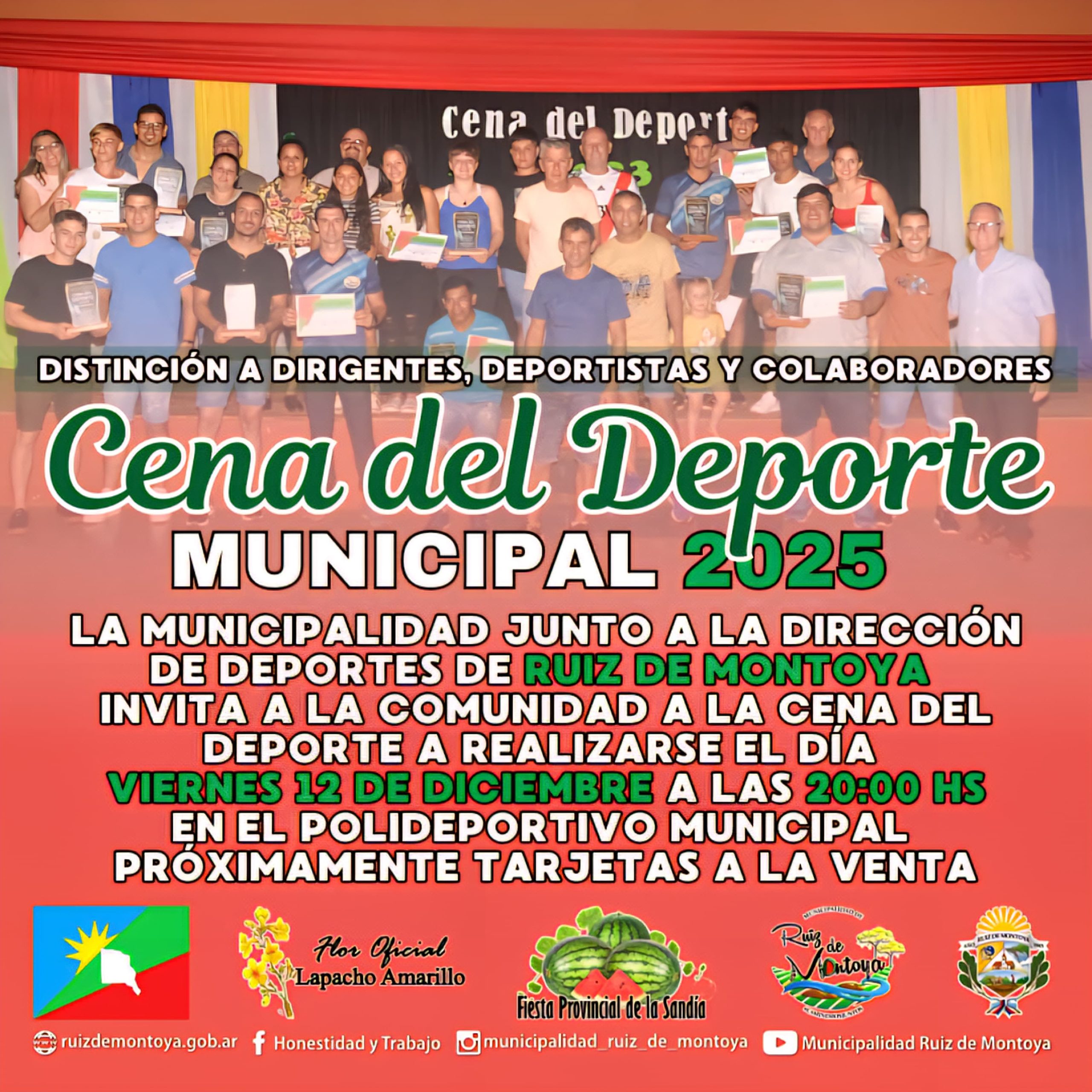 La invitación a compartir el reconocimiento a dirigentes y deportistas destacados es para el viernes 12 de diciembre a partir de las 20:00 en el Poli Deportivo Municipal.