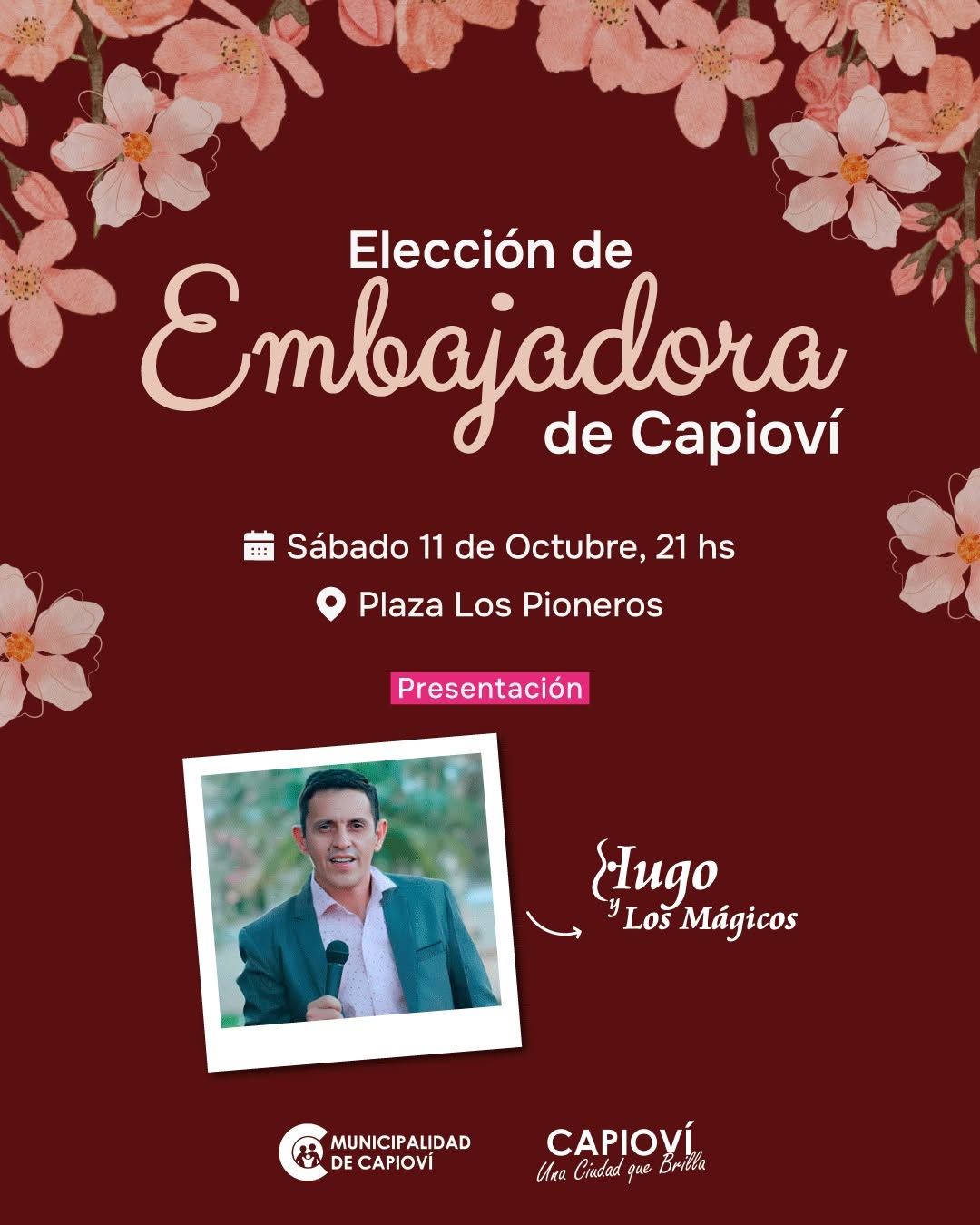 Con respecto a la continuidad del programa del mes aniversario de municipio Häser contó “el segundo fin de semana, que sería el 11 y 12, está más cargado de actividad. El 11 tenemos la elección de nuestra embajadora que hacemos un evento grande en la plaza Los Pioneros, como la gente ya lo tienen apropiado, esta vez con artistas de la zona, con música en vivo, gastronomía, artesanos, se hace además la elección de la embajadora y van a ver algunos artistas haciendo buena música arriba del escenario para que la gente pueda disfrutar. Al día siguiente, 12 de octubre, por la mañana está la misa del domingo de 8 a 9hs y a continuación, a las 9 hs es el acto central que hacemos en la plaza central, donde van a estar todas las autoridades provinciales seguramente que nos van a visitar, las instituciones de la comunidad, y a nosotros nos gusta hacer algunos homenajes a la gente que ha dado mucho por Capioví, hay gente que colabora desinteresadamente con la comunidad durante muchos años, por lo que nos gusta homenajearlas. Entonces ese día lo vamos a aprovechar también para hacer algunos homenajes y reconocimientos para gente que está presente todavía y a algunos que ya no están, pero lo vamos a hacer con su familia».
