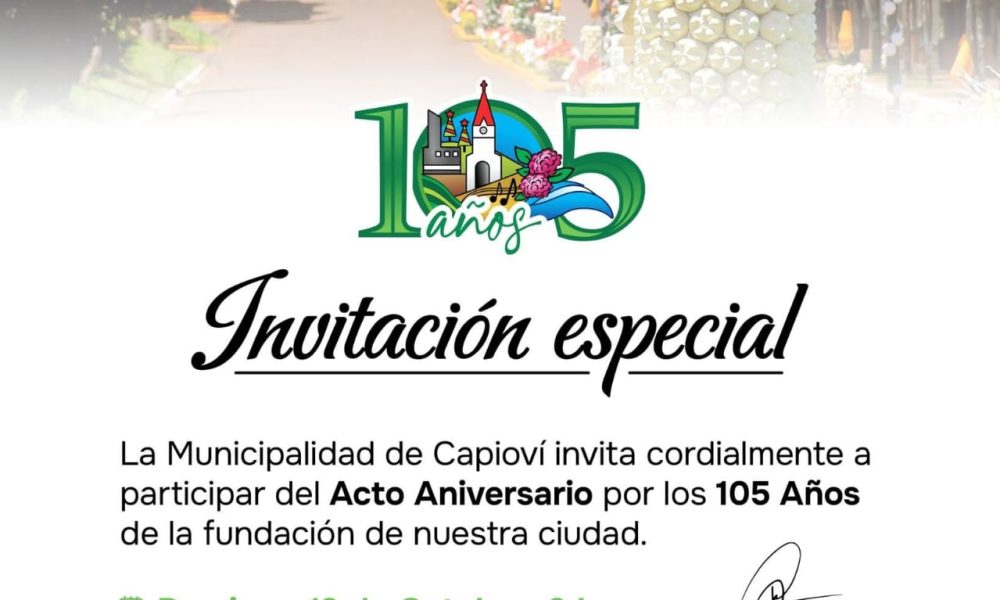 «En cuanto al acto, como todo acto de aniversario, será con toda la comunidad presente y luego del acto, ya al mediodía se hace el almuerzo de agasajo a los descendientes de pioneros, se trata de un almuerzo que comenzamos a hacer a partir del año pasado con la gestión de Ramón Arrúa, y fue algo le gustó mucho a la gente, también se hacen en otros municipios como Puerto Rico, y en Ruiz de Montoya lo vienen haciendo hace muchos años, así que nosotros lo incorporamos en Capioví y tuvimos buena aceptación de eso”.