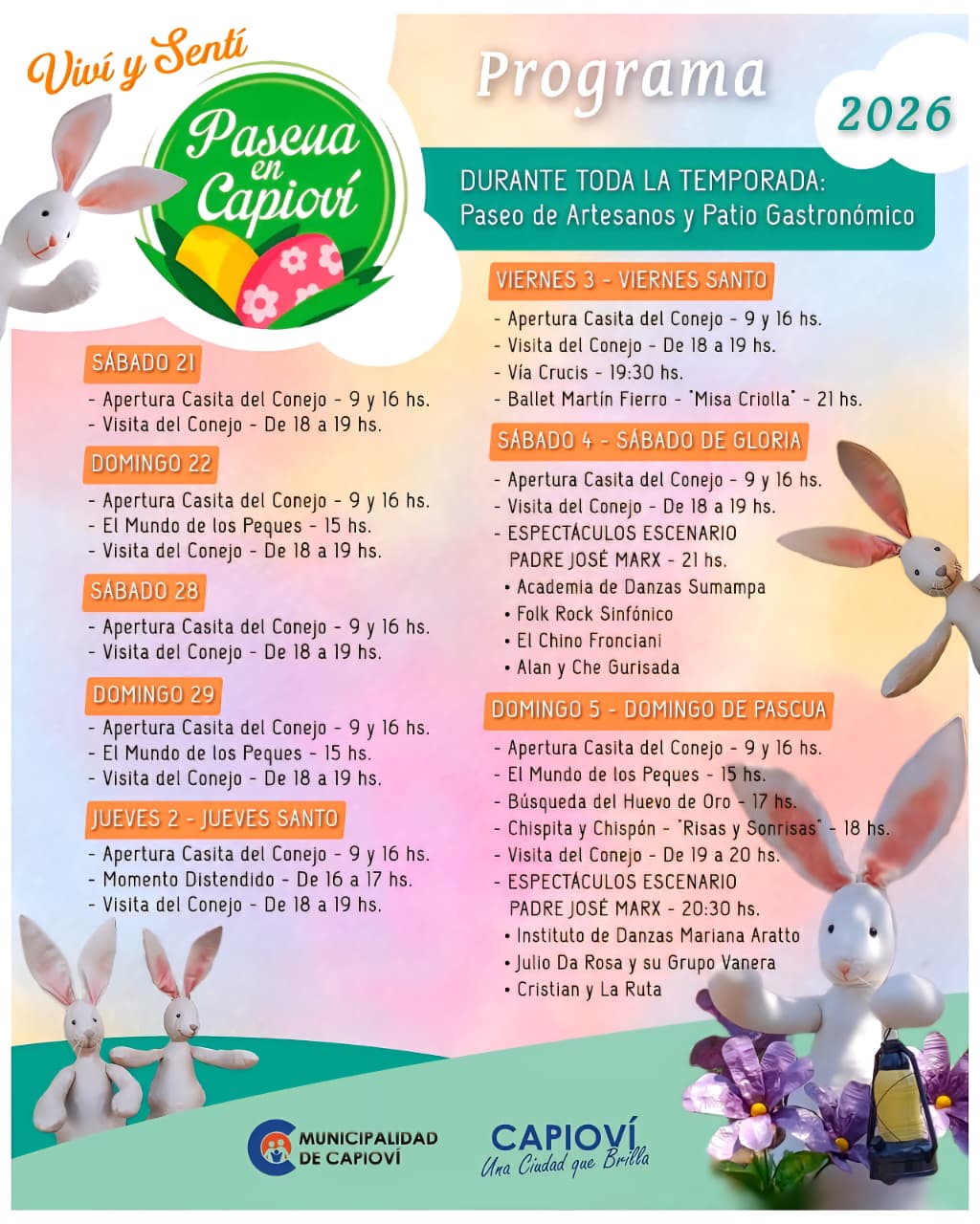 Actividades y programa de “Pascua en Capioví 2026”