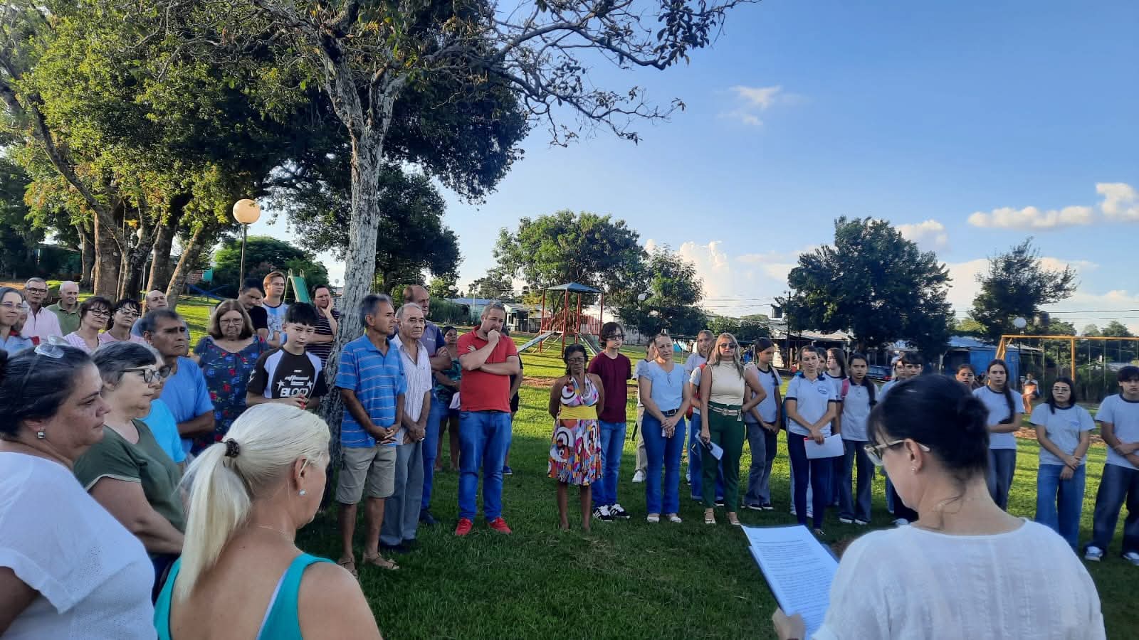 La ceremonia contó con la presencia del intendente municipal Lucas Gerhardt, junto a las concejales Nélida Bidese y Angélica Alvez, además de familiares, exdocentes, docentes, estudiantes y vecinos de la comunidad que se acercaron para rendir tributo a quien dejó una huella imborrable.
