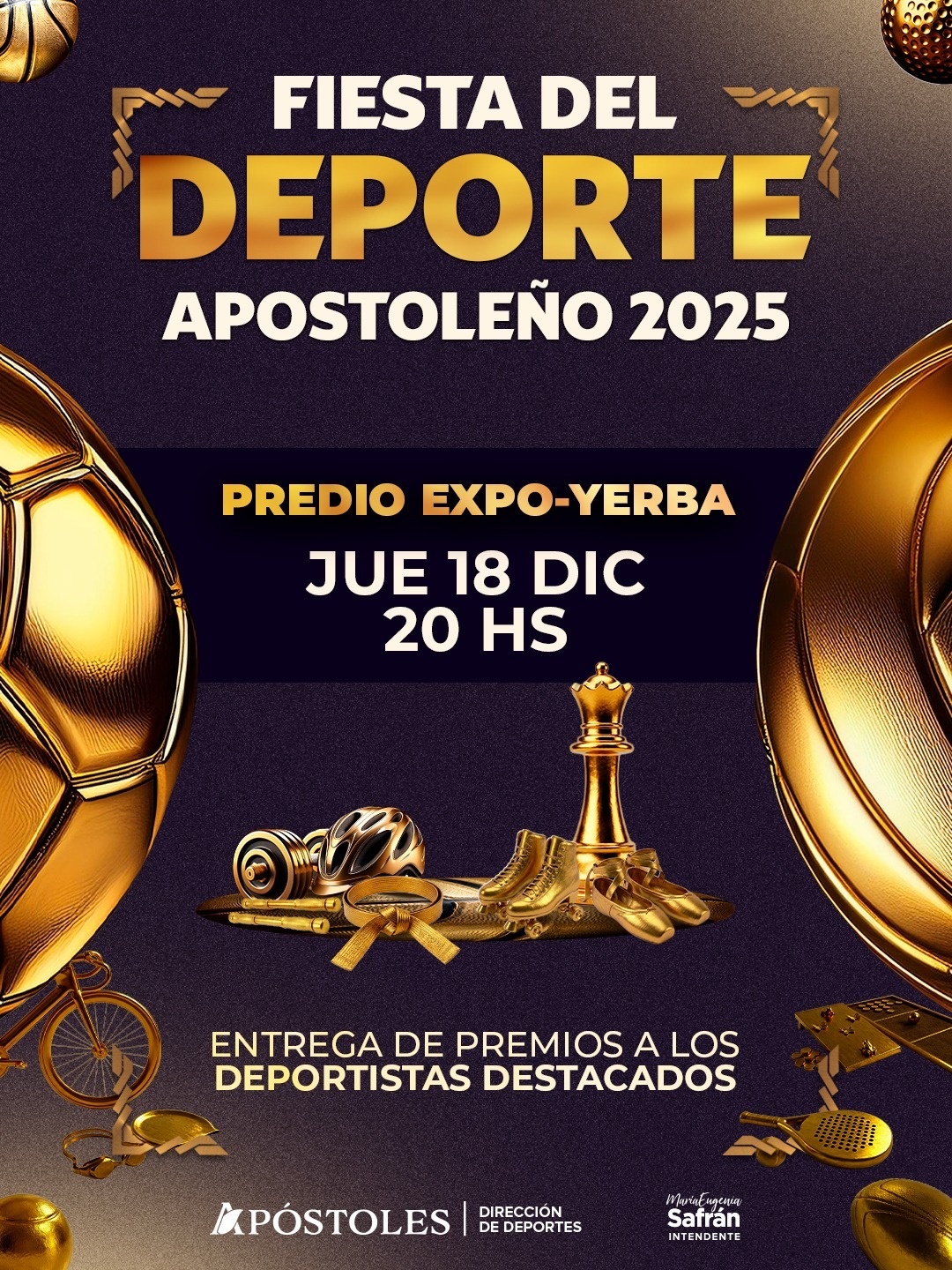 “Es una fiesta que va a reunir y celebrar los logros deportivos del 2025. Está pensada para todas las instituciones, clubes y también para los deportistas independientes que representan a Apóstoles tanto a nivel local como provincial y nacional”, expresó.