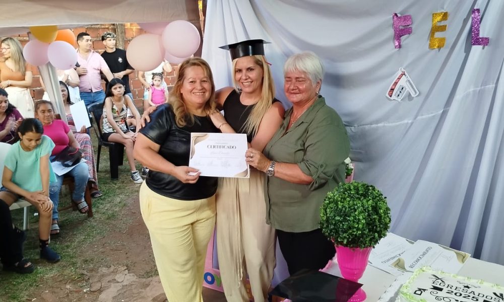 El acto de entrega de certificados que se realizó en el predio de la vivienda de Gloria Parodi, también contó con reconocimientos a compañeros quienes colaboraron para el desarrollo de los talleres y cerró con un brindis, compartido con las egresadas y sus familiares.