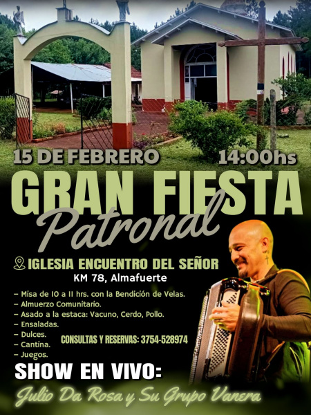 La comunidad de Almafuerte se alista para celebrar una de las fechas más esperadas del calendario religioso y social: la fiesta patronal de la Iglesia Encuentro del Señor, que tendrá lugar el próximo 15 de febrero en el kilómetro 78 de la localidad.