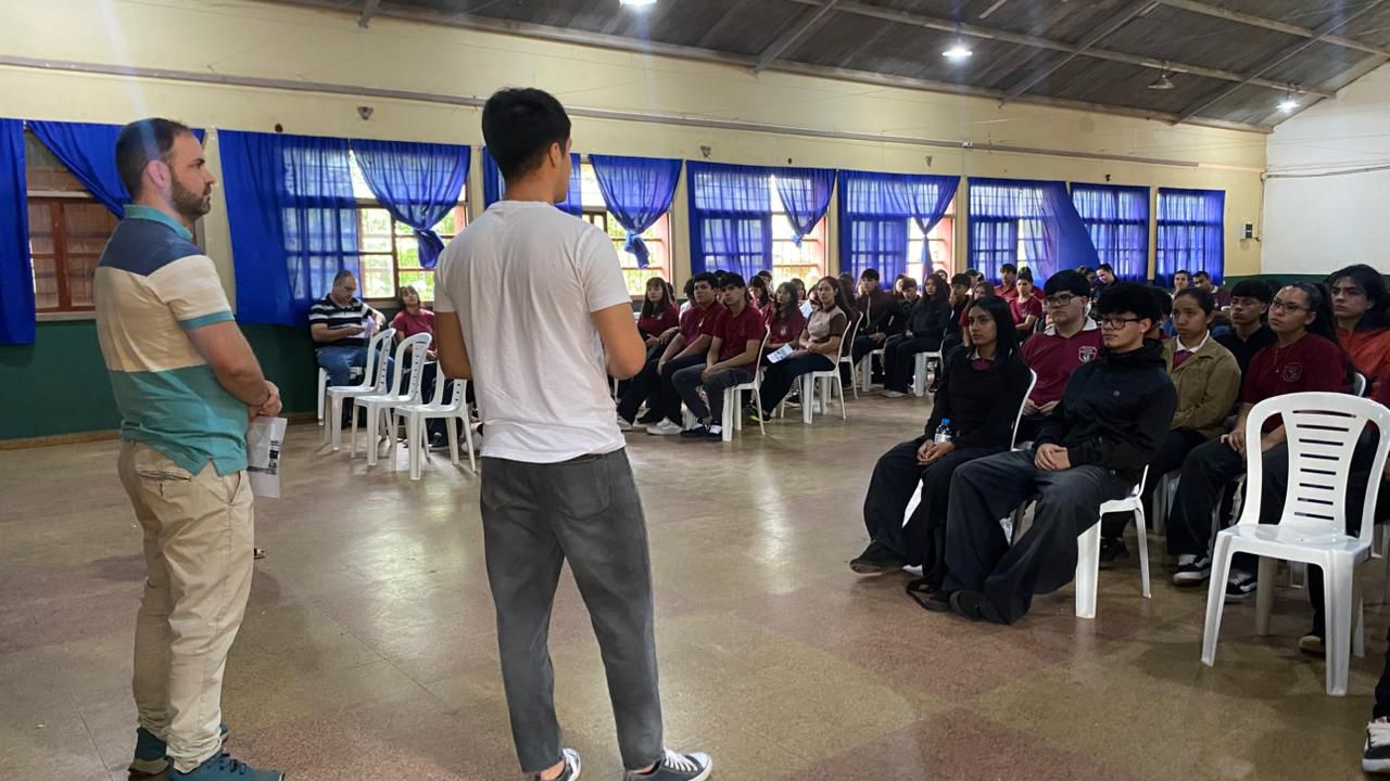 La actividad se desarrolló junto a los alumnos del B.O.P. N° 23 de Puerto Iguazú, donde se realizó una simulación práctica del acto electoral, generando un espacio de diálogo y participación ciudadana.