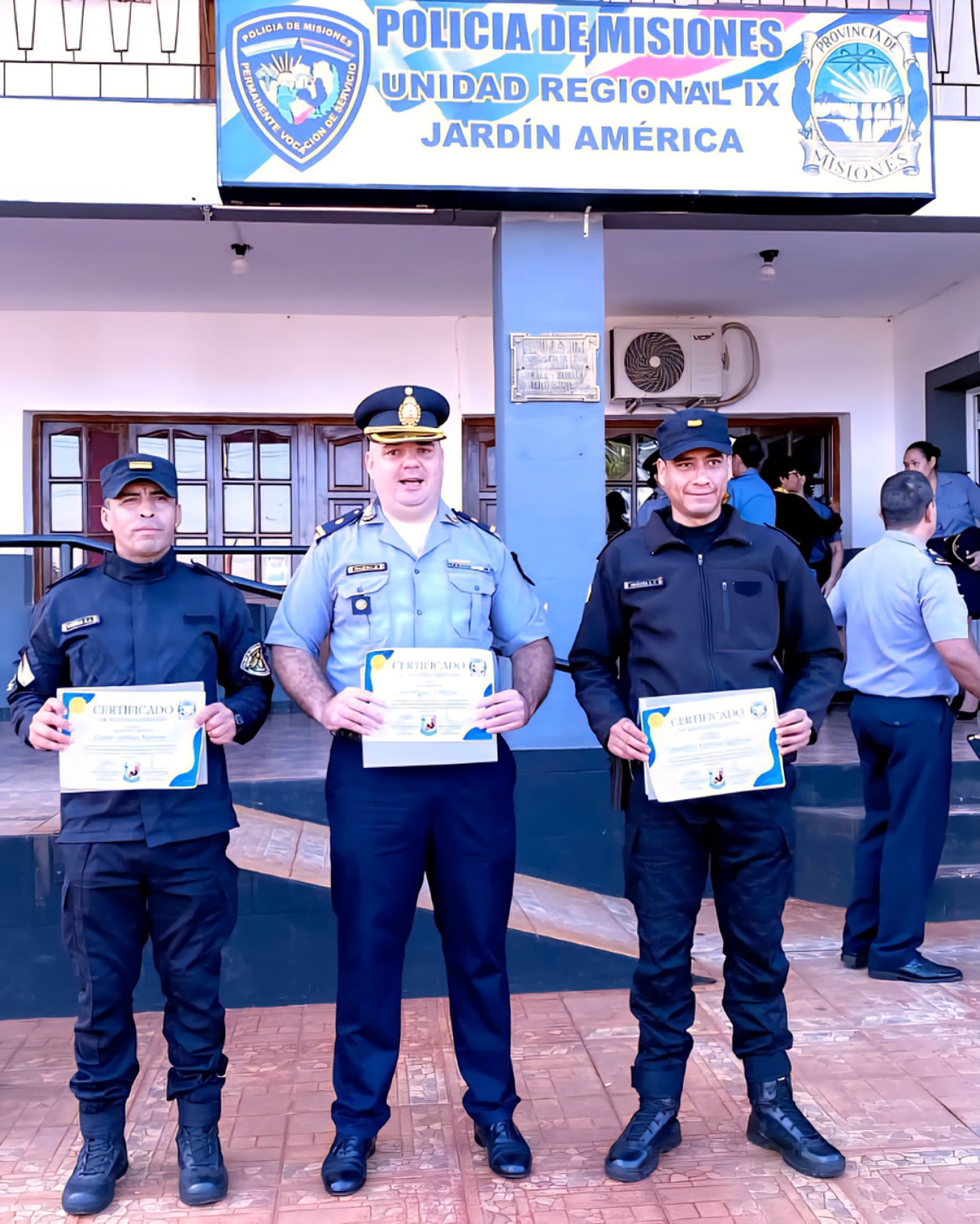 El intendente de Jardín América, César Araujo, acompañó la ceremonia formal realizada en la Unidad Regional IX, donde se distinguió a seis efectivos policiales por su destacado accionar profesional.