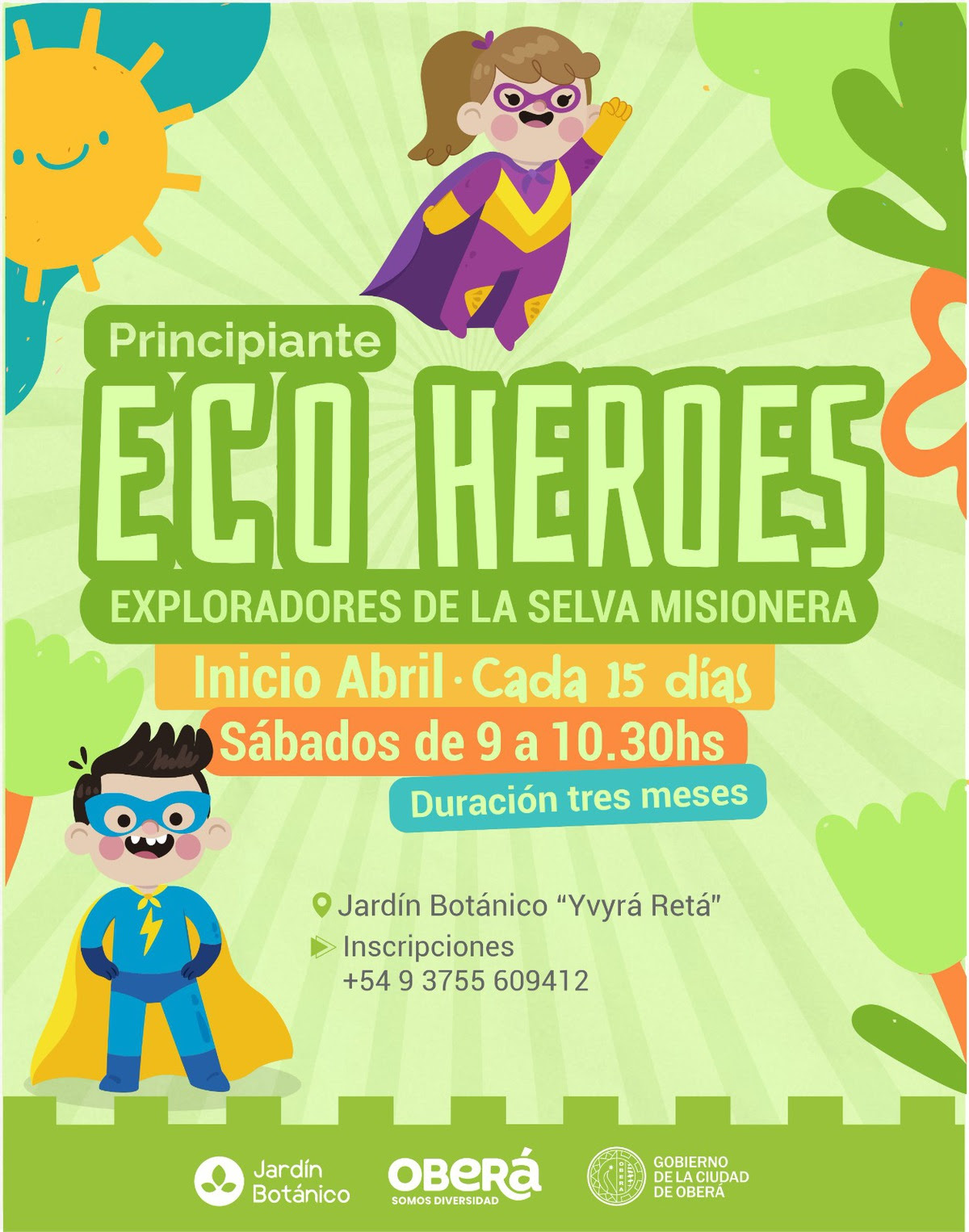 El Gobierno de la Ciudad de Oberá, a través de la Dirección de Turismo, Recreación y Cultura, tomó la iniciativa de lanzar la tercera edición del programa infantil Ecohéroes, esta vez bajo la denominación «Exploradores del Monte Obereño». La decisión se fundamentó en el éxito obtenido durante la segunda entrega del ciclo, lo que motivó la continuidad de esta propuesta educativa en el predio del Jardín Botánico.