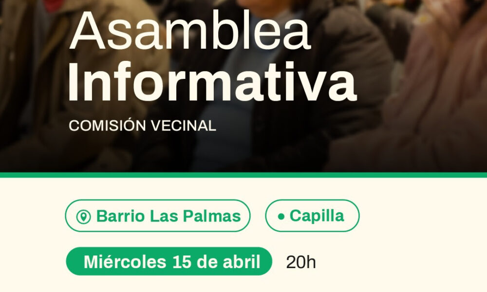 Desde el Gobierno de la Ciudad de Oberá convocan a los vecinos del Barrio Las Palmas a participar de la asamblea informativa sobre el proceso de elecciones para la conformación de autoridades de la Comisión Vecinal.