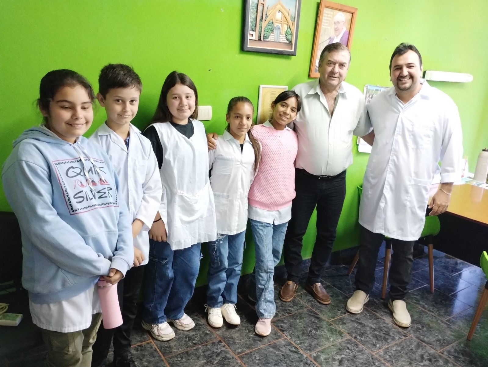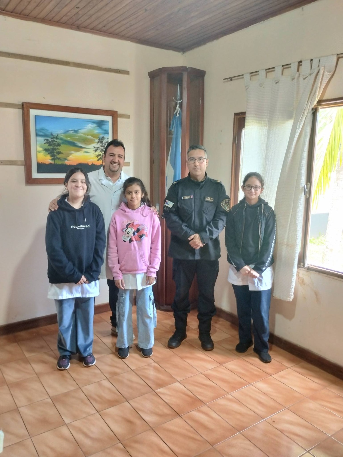 En el marco del proyecto anual de lectura “Somos Periodistas”, llevado adelante por los alumnos de 6° grado de la Escuela N.º 884 y supervisado por el docente Darío Bencharski, un grupo de estudiantes visitó la Municipalidad de Azara y la Comisaría local, donde fueron recibidos por el Intendente Rodolfo “Neco” Kuinaschuk y el Jefe de la Comisaría, Edgar López.