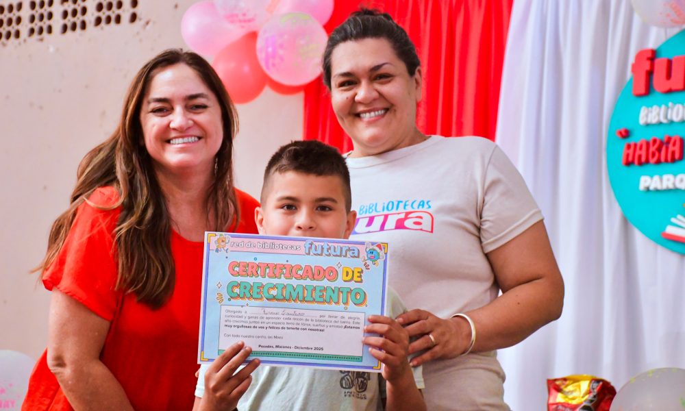 Durante 2025, la Red de Bibliotecas Barriales Futura sostuvo más de 60 horas semanales de actividades educativas en tres  barrios de Posadas, acompañando a alrededor de 150 niños y niñas y a sus familias. Este trabajo, anclado en la cercanía territorial, se apoya en promotoras educativas formadas en los propios barrios, en articulación con instituciones comprometidas con el desarrollo humano y comunitario.