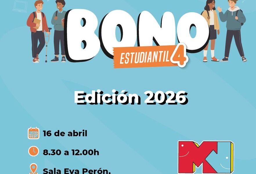 En lanzamiento del Bono Estudiantil ya tiene fecha prevista. La cita es el jueves 16 de abril a las 08.30 horas, en la Sala Eva Perón del Centro del Conocimiento. El mismo consiste en la venta de bonos a colaboración. Su objetivo, además de ayudar económicamente a los estudiantes, es promover valores como la organización, el trabajo en equipo, la autogestión y la administración responsable de los recursos. Durante el lanzamiento, los bonos serán distribuidos entre los estudiantes participantes a través de la Subsecretaría de la Juventud y de los diferentes municipios.