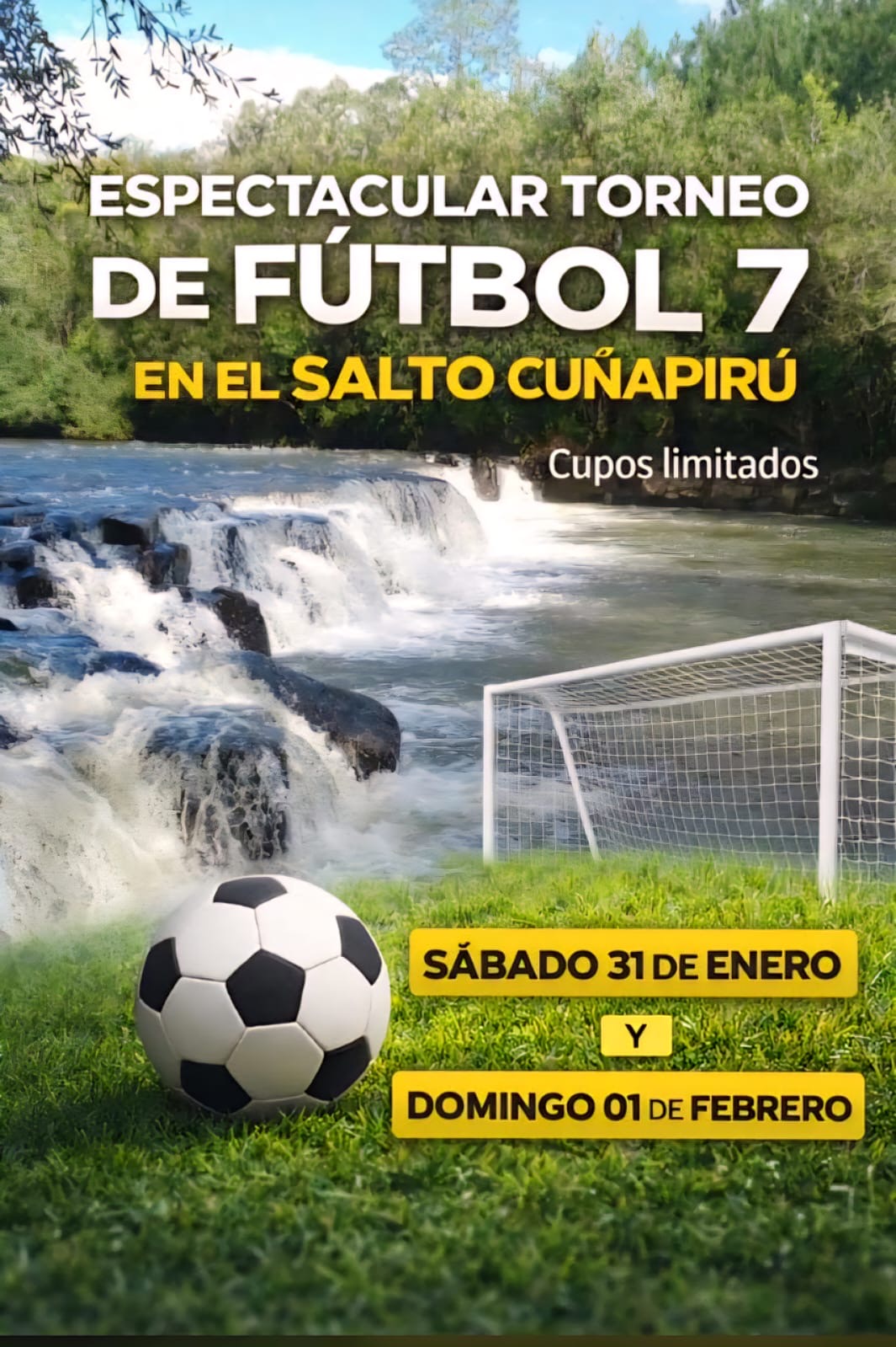 Y para el sábado 31 y domingo 1 de febrero, el municipio invita a los equipos de toda la provincia a competir, con cupos limitados, en el espectacular torneo de futbol 7 en el Salto Cuña Pirú.