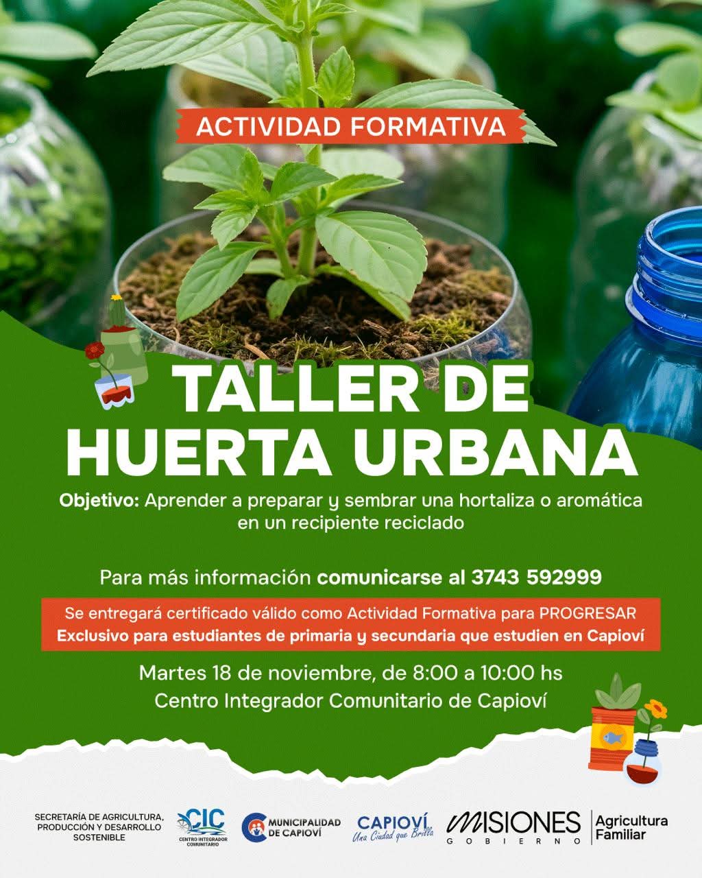 Por lo dicho a través del CIC Capioví el municipio invita al “Taller de Huerta Urbana”, se trata de una propuesta que otorgará certificado válido como actividad formativa para el Progresar.