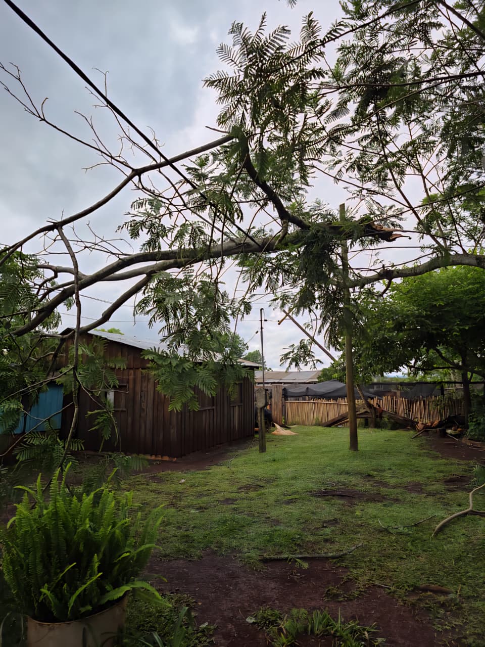 En tanto en el barrio “Ackermann”, se registraron caída de árboles sobre el tendido eléctrico y algunas voladuras de techos.