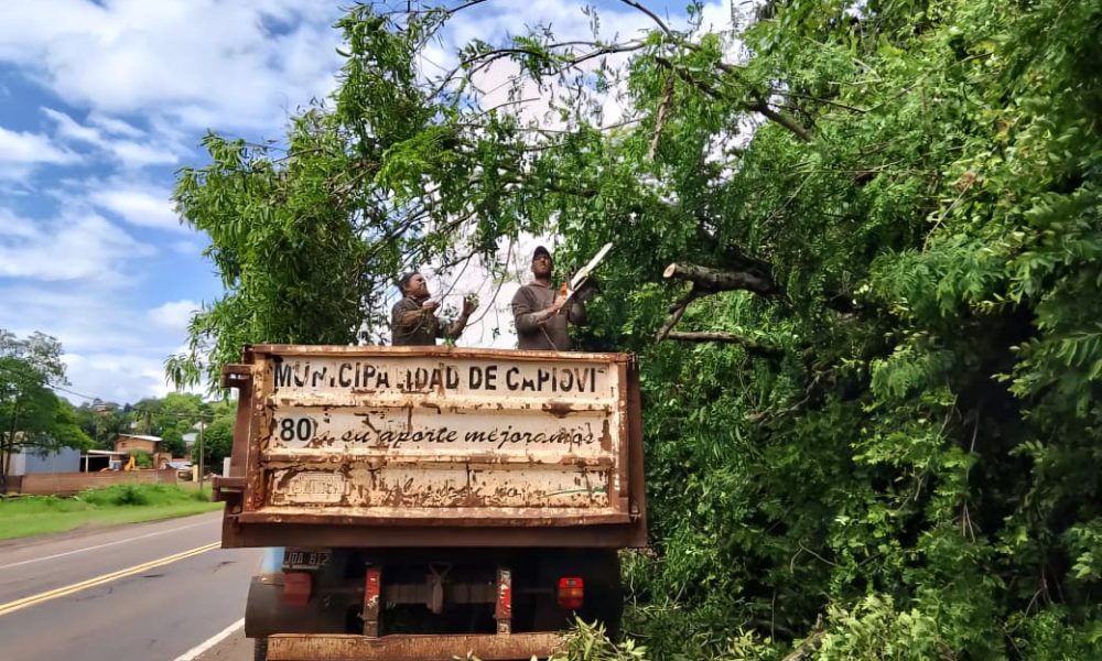 La municipalidad de Capioví, a través de la Secretaría de Obras Públicas, llevó adelante intervenciones durante y una vez pasada de la tormenta que azotó a la ciudad en horas del último domingo.