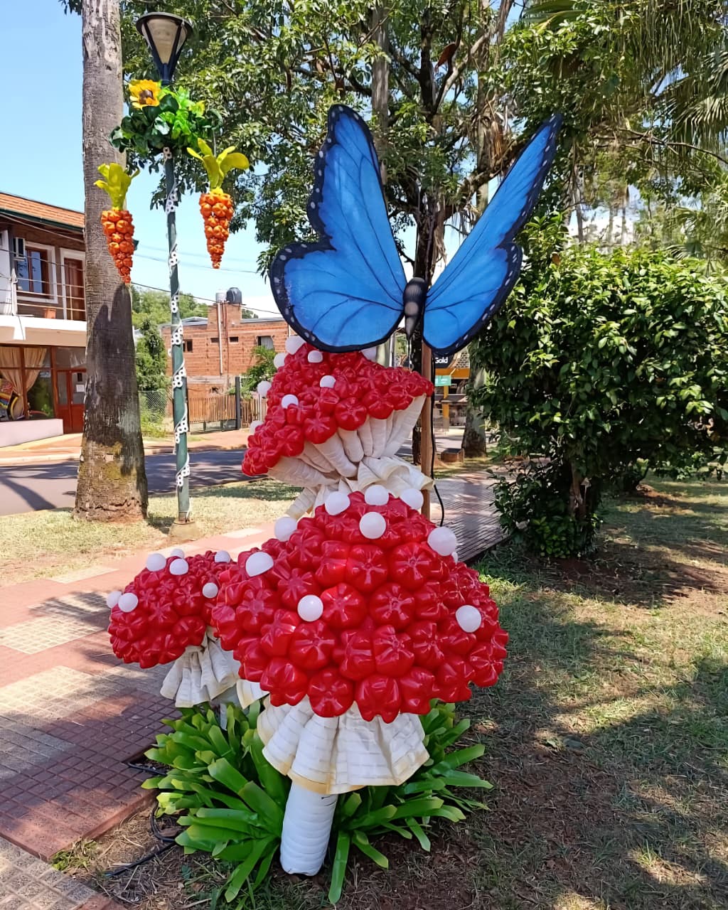 Un grupo de vecinos trabajan arduamente durante todo el año para la creación de adornos utilizando como material primordial botellas de plástico, las obras de arte embellecen la ciudad reflejando además el compromiso ambiental que el municipio que gestiona Ramón Arrúa ostenta.