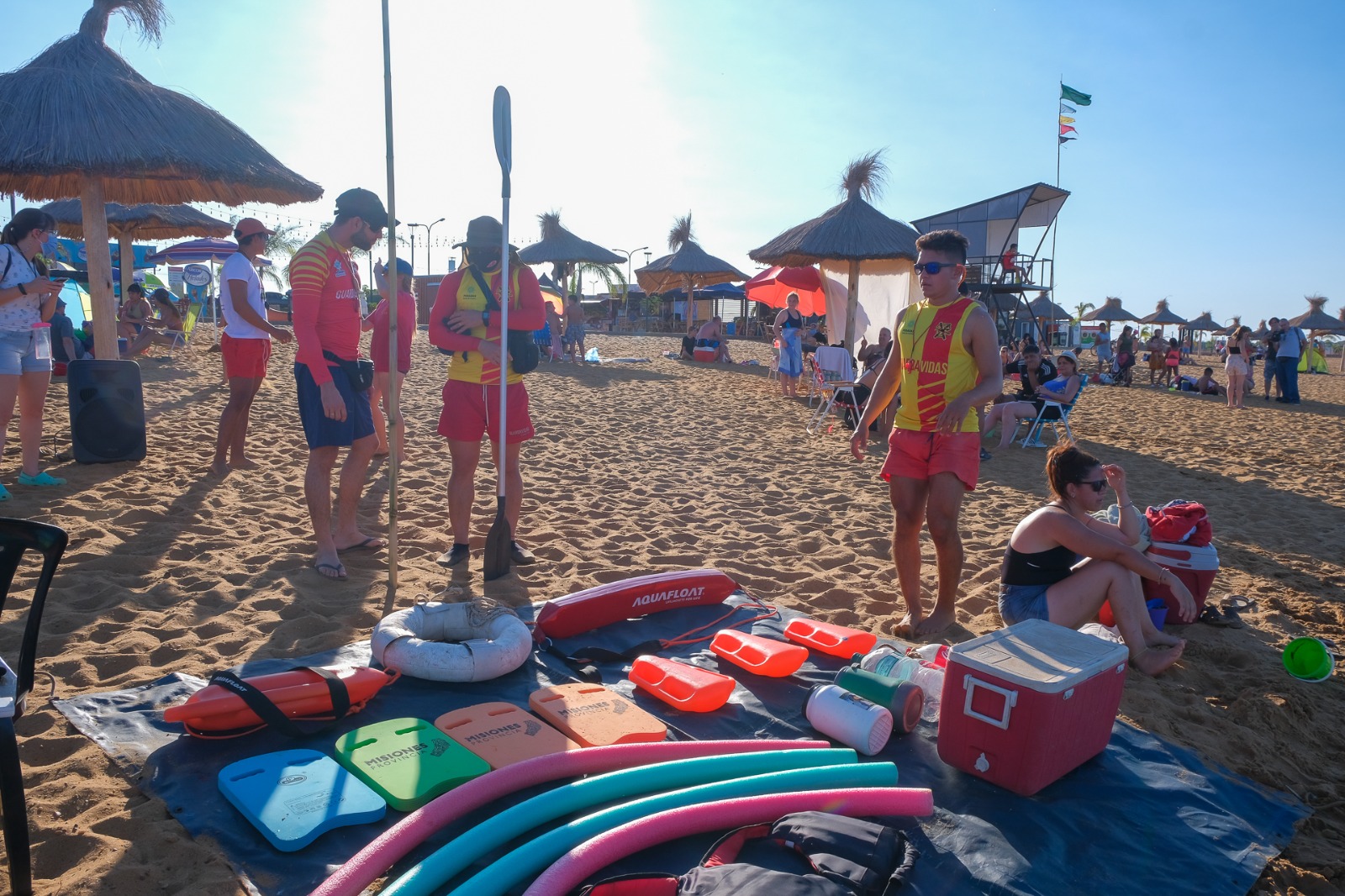 La guardavidas Araceli Vázquez explicó que «estamos con el pre curso, todo el mes de febrero, que consiste en clases de apoyo para los alumnos que quieren hacer el cursillo de ingreso a la escuela de guardavidas y les falta mejorar técnicamente, un poco más de capacidad aeróbica».