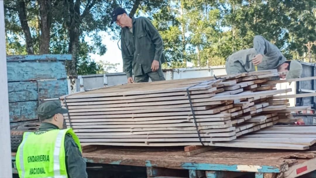 Las acciones incluyeron la verificación de posibles desmontes en el marco de denuncias ambientales, así como actuaciones administrativas para la medición de material forestal nativo. En este contexto, se constató y midió madera nativa aserrada transportada sin amparo legal, la cual había sido detenida en un control de ruta por personal de Gendarmería Nacional en la localidad de San Vicente.