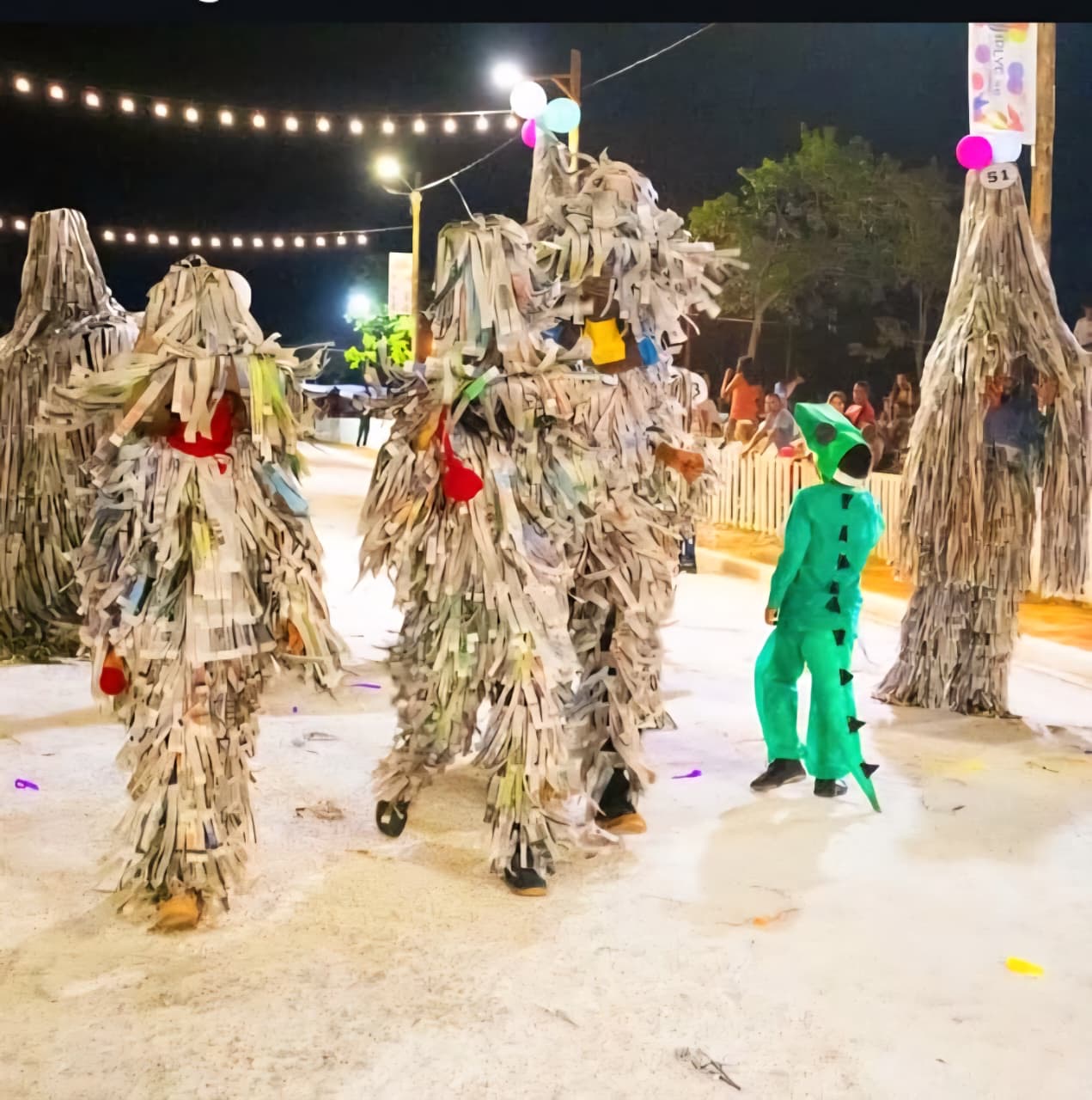 Se trata de danzantes que confeccionan sus propios trajes de papeles de diario y revistas cortadas en cintas, además cubren sus rostros con caretas artesanales y que para esta edición 2026 han utilizado otros materiales siempre en la técnica de tiras.