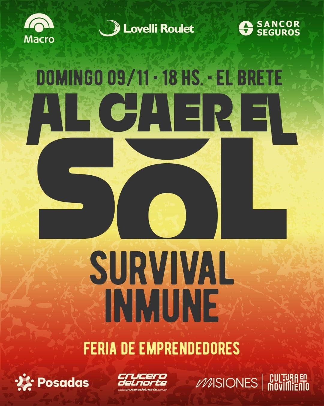 El ciclo Al Caer el Sol presenta este domingo, desde las 18 hs, un nuevo atardecer musical en El Brete. En esta edición, el escenario recibirá a Survival, con su reggae recargado a Inmune y su impronta de rock alternativo.