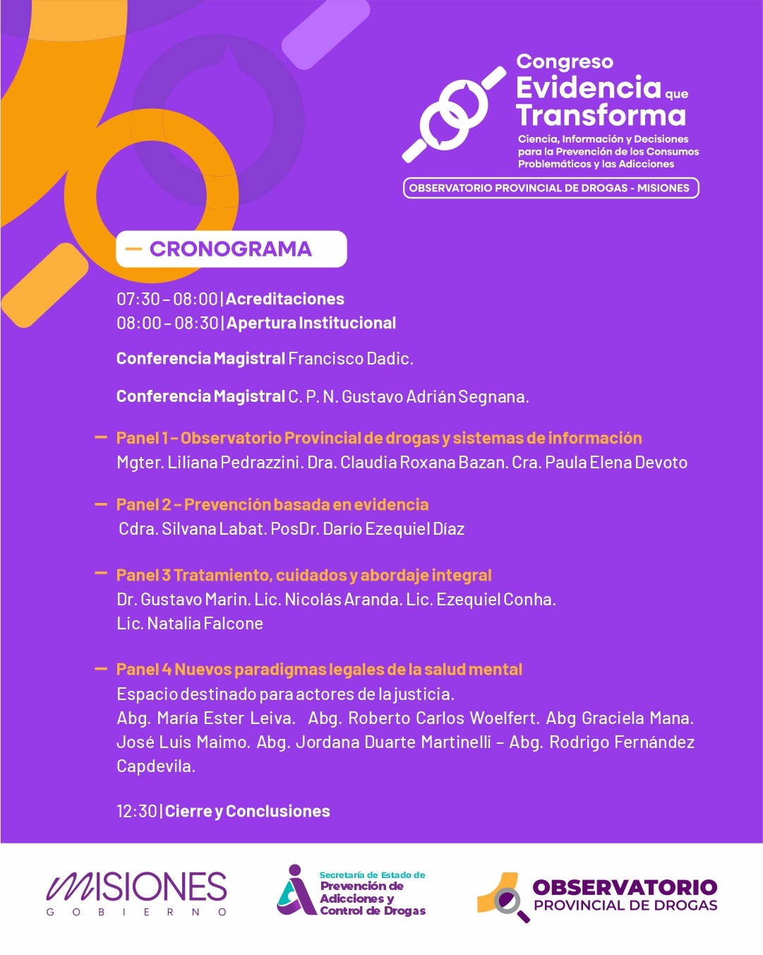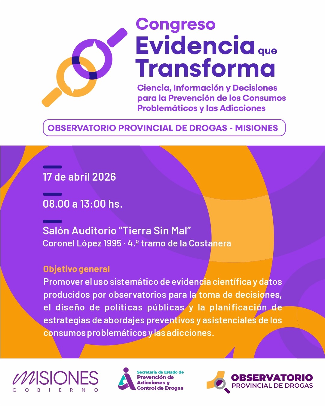 Ciencia, Información y Decisiones para la Prevención de los Consumos Problemáticos y las Adicciones”, organizado por la Secretaría de Estado de Prevención de Adicciones y Control de Drogas de la Provincia de Misiones.