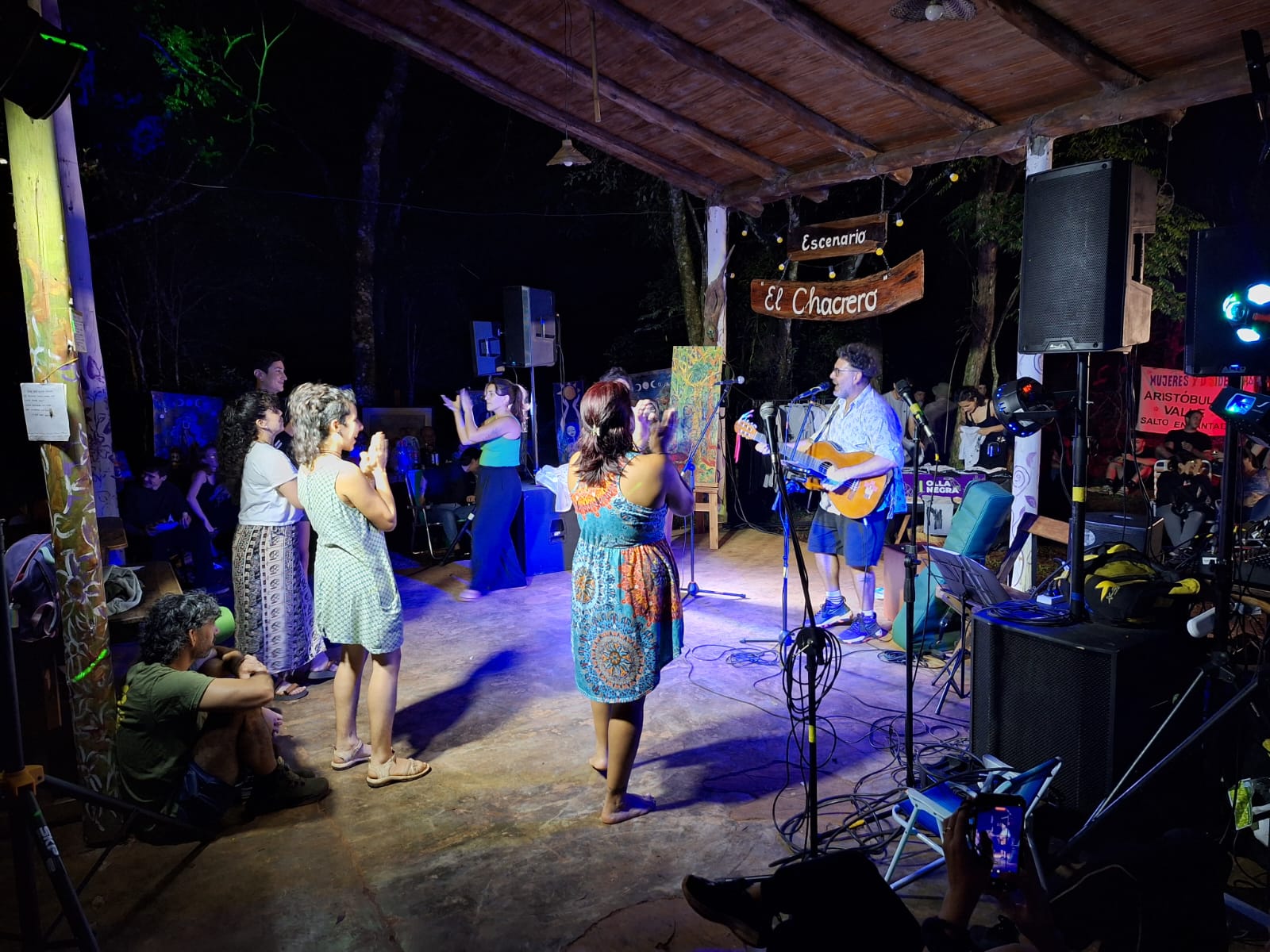 “Vino mucha gente y nadie llega de paso hasta acá; tiene que venir y hacer un camino de tierra. Y hoy, ver tanta gente acá… es muy fuerte para nosotros”, dijo Cacho, con mucha emoción. Recordó el día en que llegaron, hace 22 años, a instalarse en el terreno. “Teníamos una carpa, tres hijos y el sueño de crear un lugar donde se encuentren la música, la pintura, la cultura… con el cuidado del ambiente. Esto se ha convertido en un refugio –porque eso es lo que nos dicen-. Un espacio de resistencia, donde podemos debatir, abrazarnos, querernos. Creemos mucho en la construcción colectiva. Y lo que ocurrió este fin de semana fue un riesgo, por el clima que estaba incierto. Pero estamos felices de que haya salido tan bien”.
