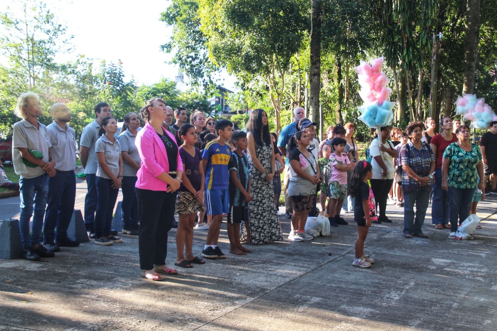 Uno de los momentos más significativos de la jornada fue el histórico izamiento de los pabellones nacional y provincial. Tras años de espera, se acondicionaron los mástiles principales en el ingreso al área de conservación. Al son de las estrofas del Himno Nacional Argentino y «Misionerita», vecinos de todas las edades compartieron este gesto de soberanía y pertenencia.