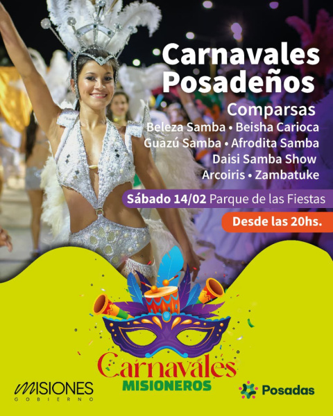 Ante la actualización del pronóstico del tiempo para este sábado 14 de febrero, se informa que la última noche de los Carnavales Posadeños se realizará con total normalidad, según lo previsto en el cronograma oficial.