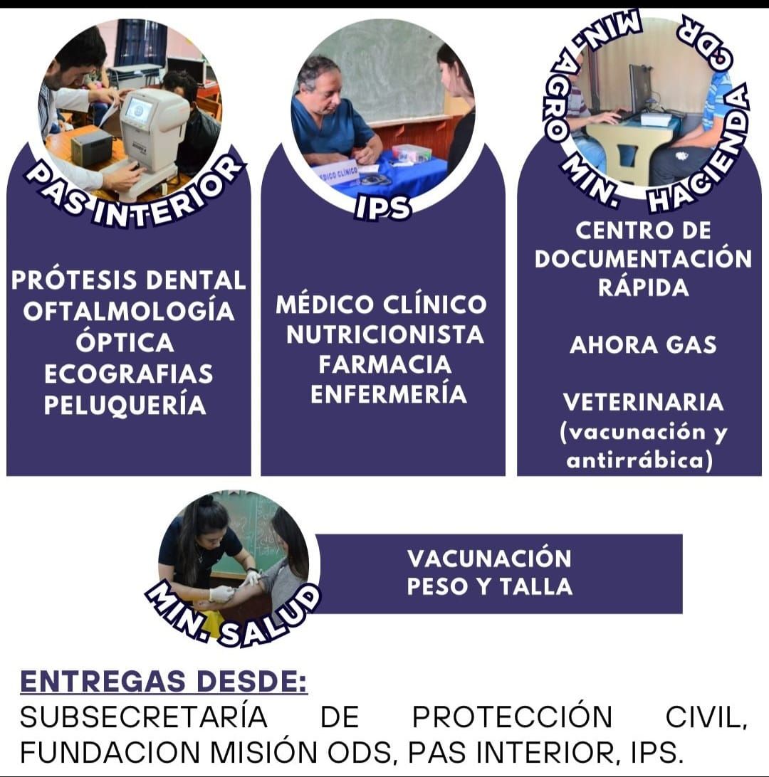 El Instituto de Previsión Social (IPS) también tendrá una activa participación, ofreciendo atención de médicos clínicos, pediatras, nutricionistas y una farmacia móvil que proveyó medicamentos directamente a los pacientes atendidos.