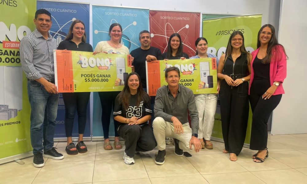El Ministerio de Desarrollo Social, la Mujer y la Juventud realizó el sorteo de la tercera edición del Bono Estudiantil, con la presencia del ministro Fernando Meza, el subsecretario de la Juventud, Pablo Nuñez, y el presidente del Instituto Provincial de Loterías y Casinos (IPLyC), Héctor Rojas Decut. La actividad se llevó a cabo en articulación con la Subsecretaría de la Juventud y el IPLyC. El primer premio, de 5 millones de pesos, quedó en manos de un cupón vendido en Wanda (N.º 21868).
