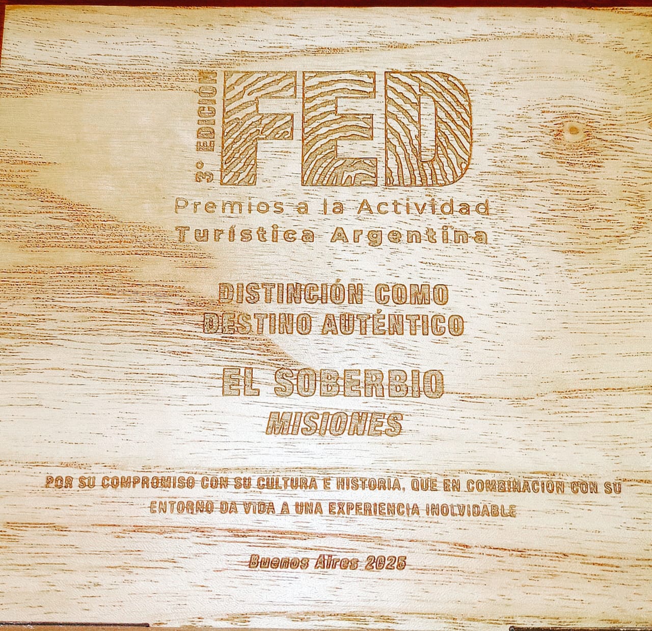 En una ceremonia que reunió a los principales referentes del turismo nacional, El Soberbio fue galardonado con el título de «Destino Auténtico» en los Premios FED 2025, una distinción que reconoce a los lugares que mejor representan la esencia, la innovación y el compromiso con el turismo genuino en Argentina.