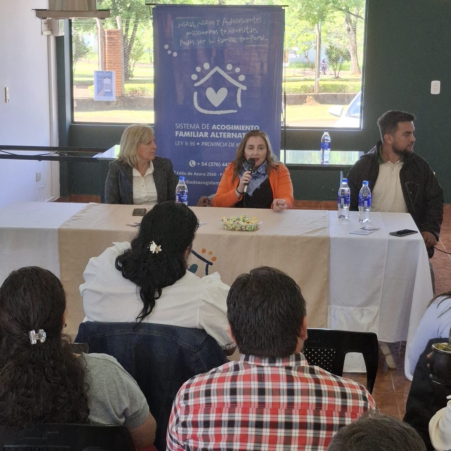 En Salón Vidriado del Instituto Nacional de la Yerba Mate (INYM) de Expo Yerba de Apóstoles se desarrolló una charla informativa y capacitación acerca del Sistema de Acogimiento Familiar Alternativo -Ley II-Nº36- con el fin de convocar a familias a sumarse a esta forma de cuidados alternativos para niños, niñas y adolescentes cuyos derechos hayan sido vulnerados y estén privados de los cuidados parentales.