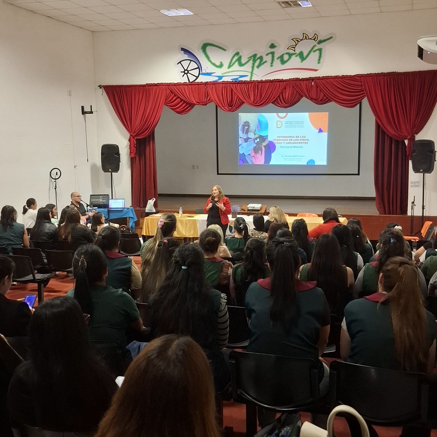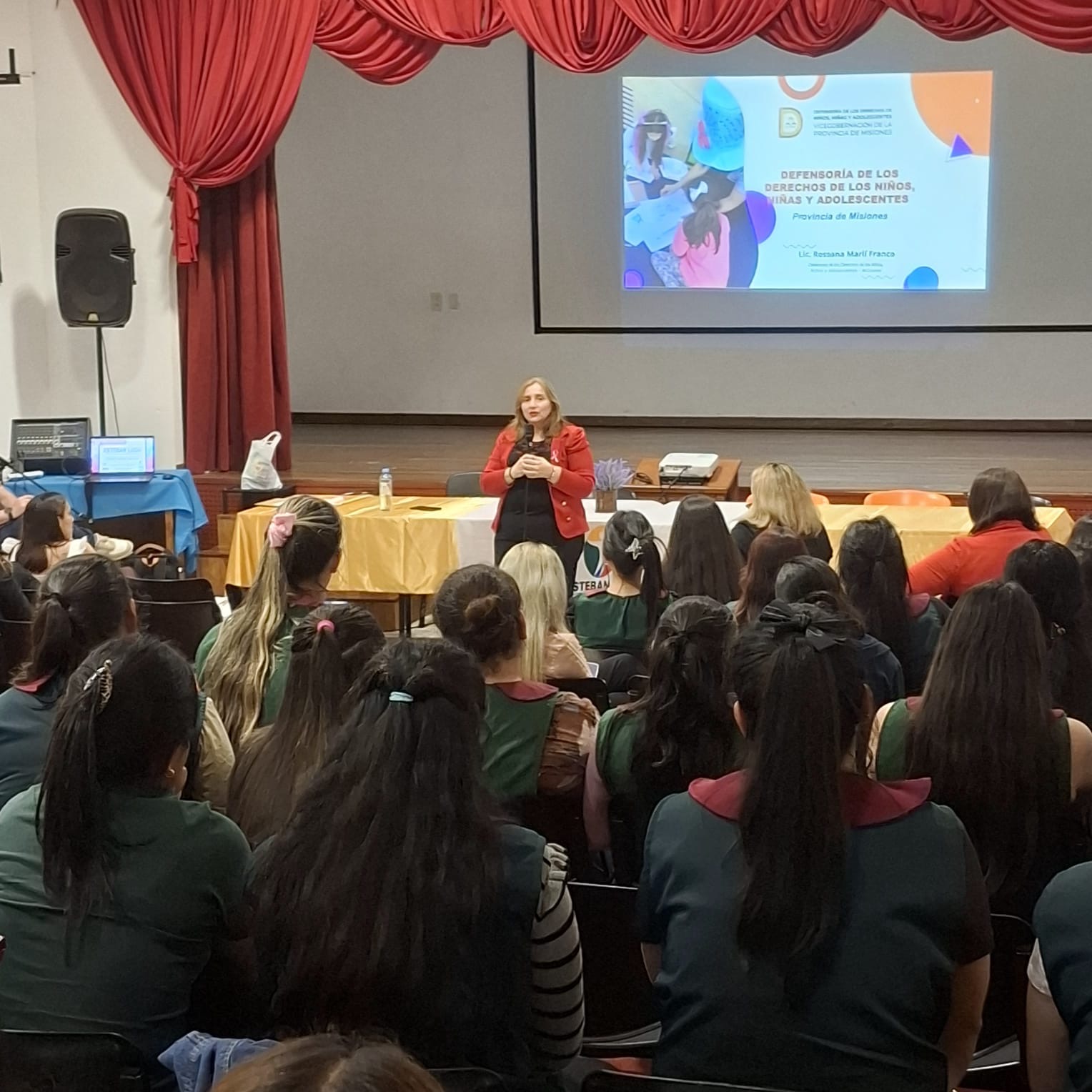 La Defensora Provincial de los Derechos de los Niños, Niñas y Adolescentes, Lic. Rossana Franco participó en la 10° Jornada Provincial de la Tecnicatura Superior en Jardín Maternal “Infancias protegidas: cuidado, derechos y entornos seguros en la era digital. Arte, tecnología, vínculos y prevención para una infancia libre de violencias”, que se desarrolló el sábado en la Casa de la Cultura de la localidad de Capioví.