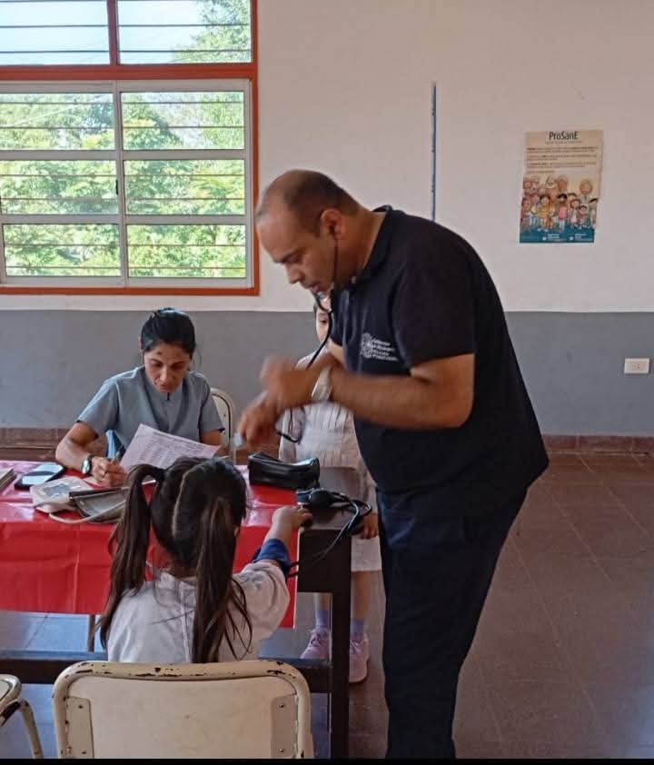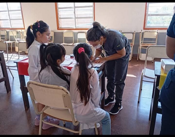En la escuela se coordina con directivos y padres y se desarrolló Control de peso y talla, control de HTA, controle médico clínicos, nutricionales y odontología y examen visual ademas control de libretas de vacunas y posterior aplicación de las vacunas siempre con la compañía de los padres y docentes.