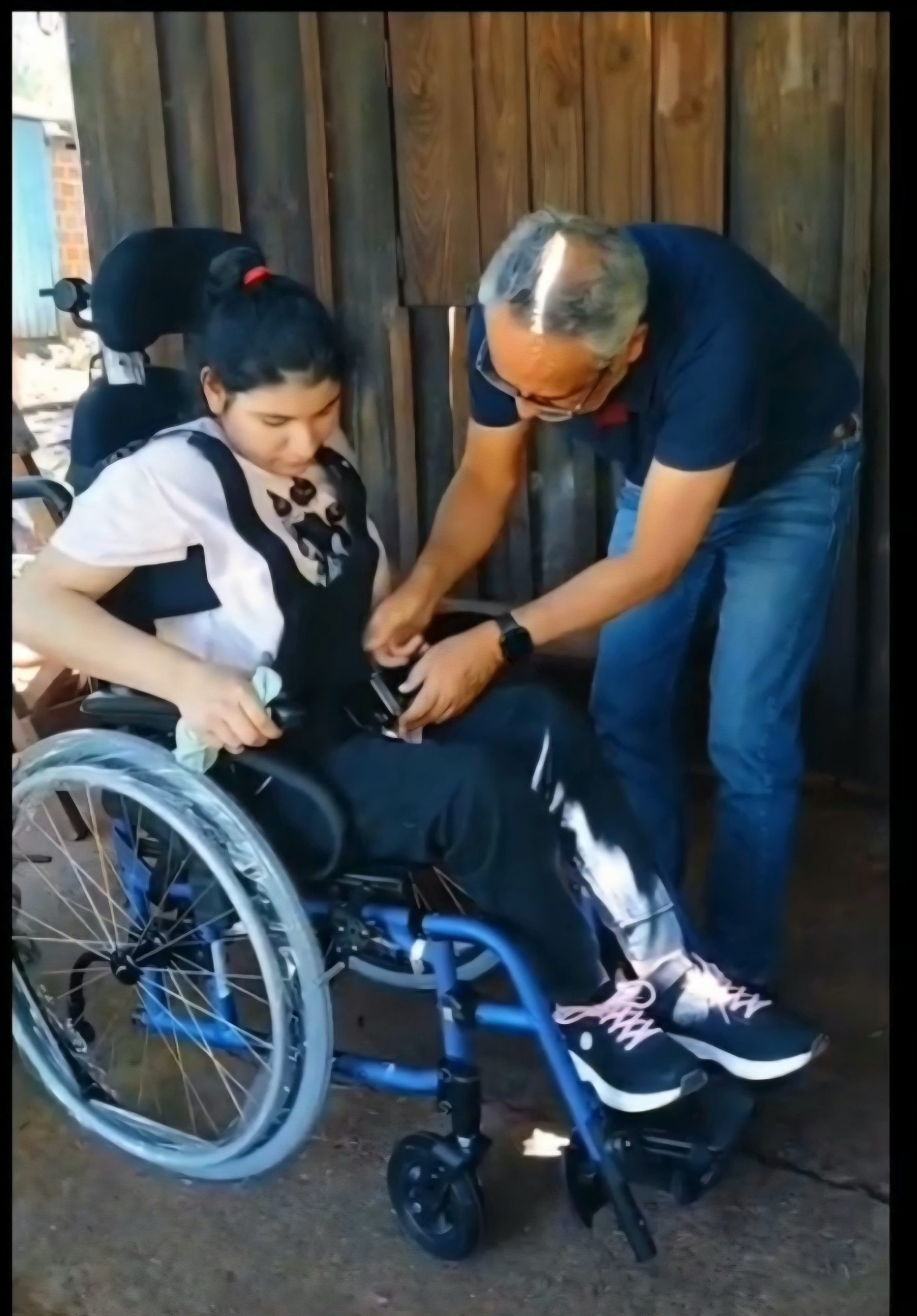 Nidia Noemi Sandoval es una joven de la localidad de Santa Ana que padece retraso madurativo y paraplejía espástica, ambas condiciones que dificultan extremadamente su movilidad.