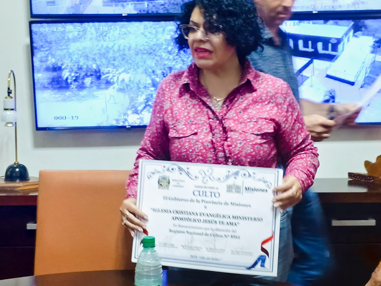 La Subsecretaría de Culto del Ministerio de Gobierno de Misiones entregó un nuevo Registro Nacional de Culto a la Iglesia Cristiana Evangélica Ministerio Jesús Te Ama, de la ciudad de Garupá.