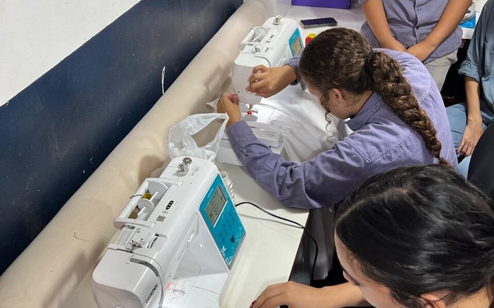 La mejora del espacio formativo ya comenzó a materializarse en resultados concretos. En el marco del proyecto “Cobijar con amor”, los alumnos del curso Fundamentos del Diseño Textil Funcional elaboran 100 mantitas bordadas, destinadas al Hospital Materno Neonatal a través de la Asociación Civil Dar a Luz.