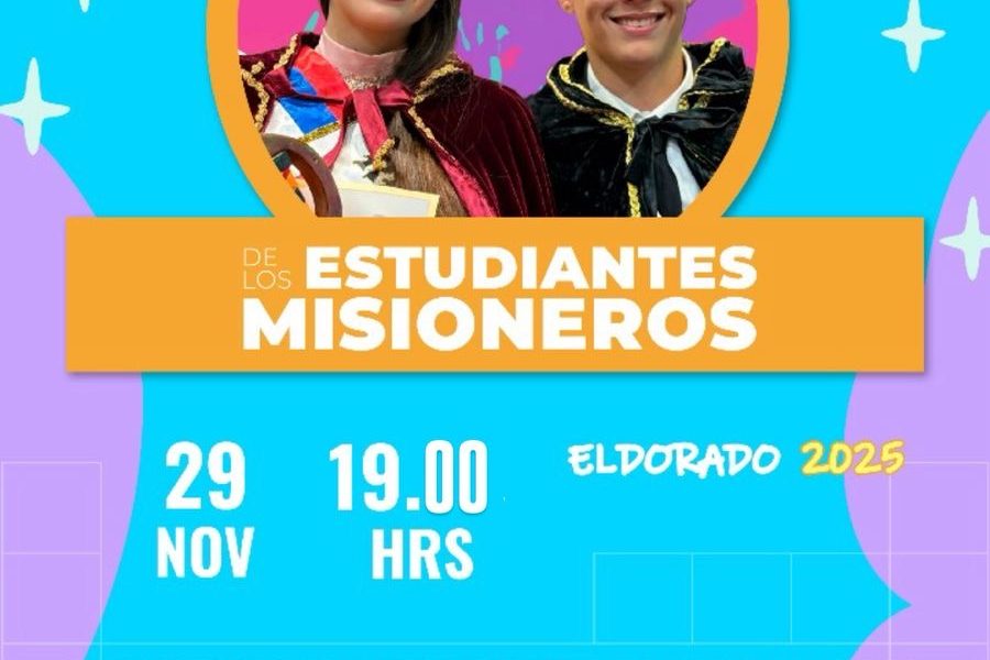 El próximo sábado 29 de noviembre se realizará, por primera vez en la ciudad de Eldorado, la Fiesta Provincial de los Estudiantes Misioneros. El encuentro, organizado por el Ministerio de Desarrollo Social, la Mujer y la Juventud, junto a otros organismos del Estado, tendrá lugar en el Polideportivo Municipal Héctor Ligorria, ubicado en el kilómetro 9.