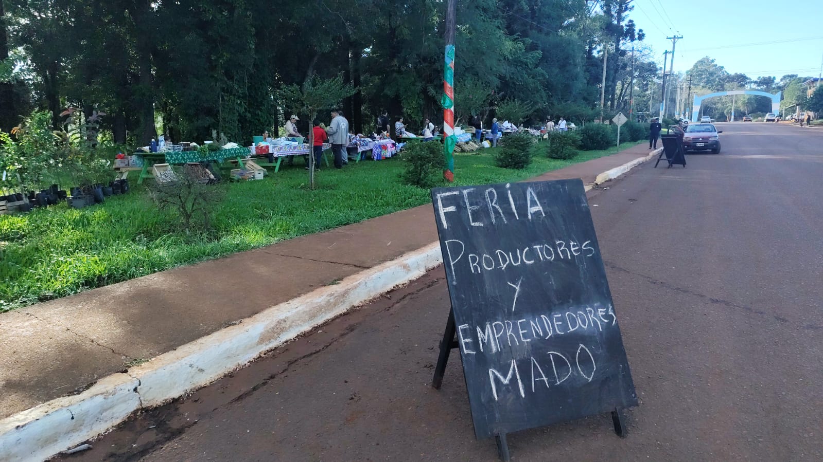 La feria se desarrolla sobre la avenida Invernisi, en un espacio estratégico que combina amplitud, sombra y cercanía a comercios, lo que favorece la circulación de vecinos y potenciales compradores. Además, se consolida como un punto de encuentro donde confluyen distintas actividades económicas.