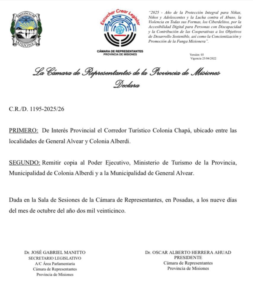 Desde la Municipalidad de General Alvear, bajo la gestión del intendente Daniel Rodríguez, el área de turismo ,compuesta por los municipios de Colonia Alberdi y General Alvear, logró recuperar documentación clave del lote 239, ubicado sobre el Arroyo Soberbio, que había sido donado en 1994 al municipio y permanecía extraviado. “Después de un trabajo exhaustivo de búsqueda, hoy podemos decir con orgullo que tenemos toda la documentación necesaria para avanzar”, expresó Biolatto.
