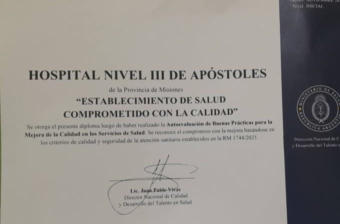 En el salón de las «Dos Constituciones» de la cámara de diputados de la ciudad de Posadas el Hospital de Apóstoles alcanzó un importante hito al obtener la Certificación Nacional en Calidad Sanitaria, reconocimiento otorgado en el marco de la Primera Jornada Interdisciplinaria de Calidad y Seguridad del Paciente.