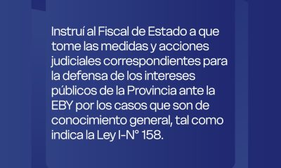Passalacqua instruyó al fiscal de estado para que proceda a iniciar acciones judiciales contra la EBY