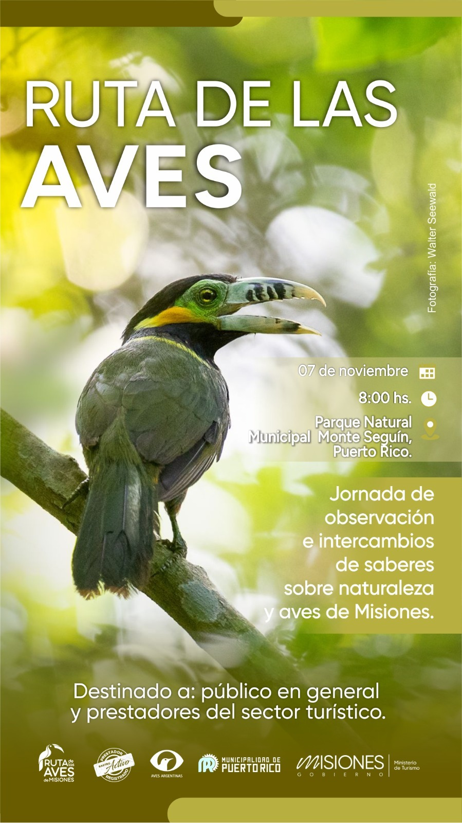 Este viernes 7 de noviembre, a partir de las 8 h, se realizará una jornada de observación e intercambio de saberes sobre la naturaleza y las aves de Misiones en el Parque Natural Municipal Monte Seguín, en Puerto Rico.