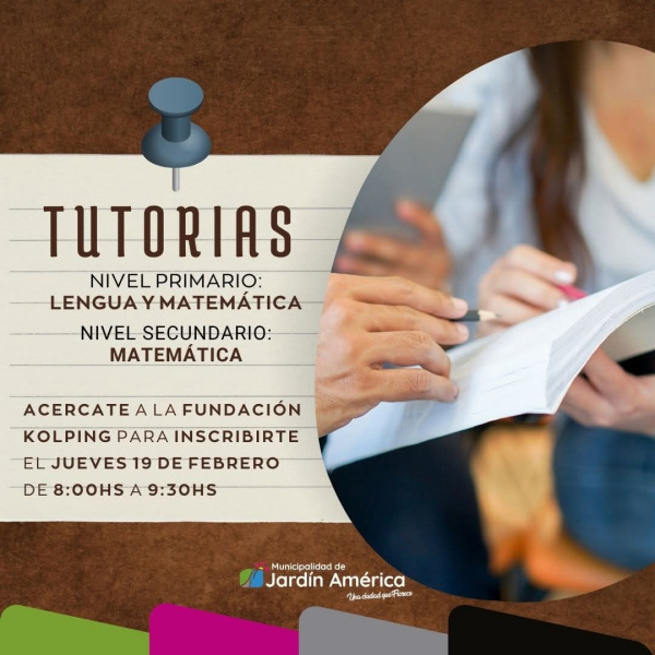 La Municipalidad de Jardín América informa a la comunidad que se encuentran abiertas las inscripciones para el programa de tutorías destinado a acompañar a niños, niñas y adolescentes en su proceso de aprendizaje.