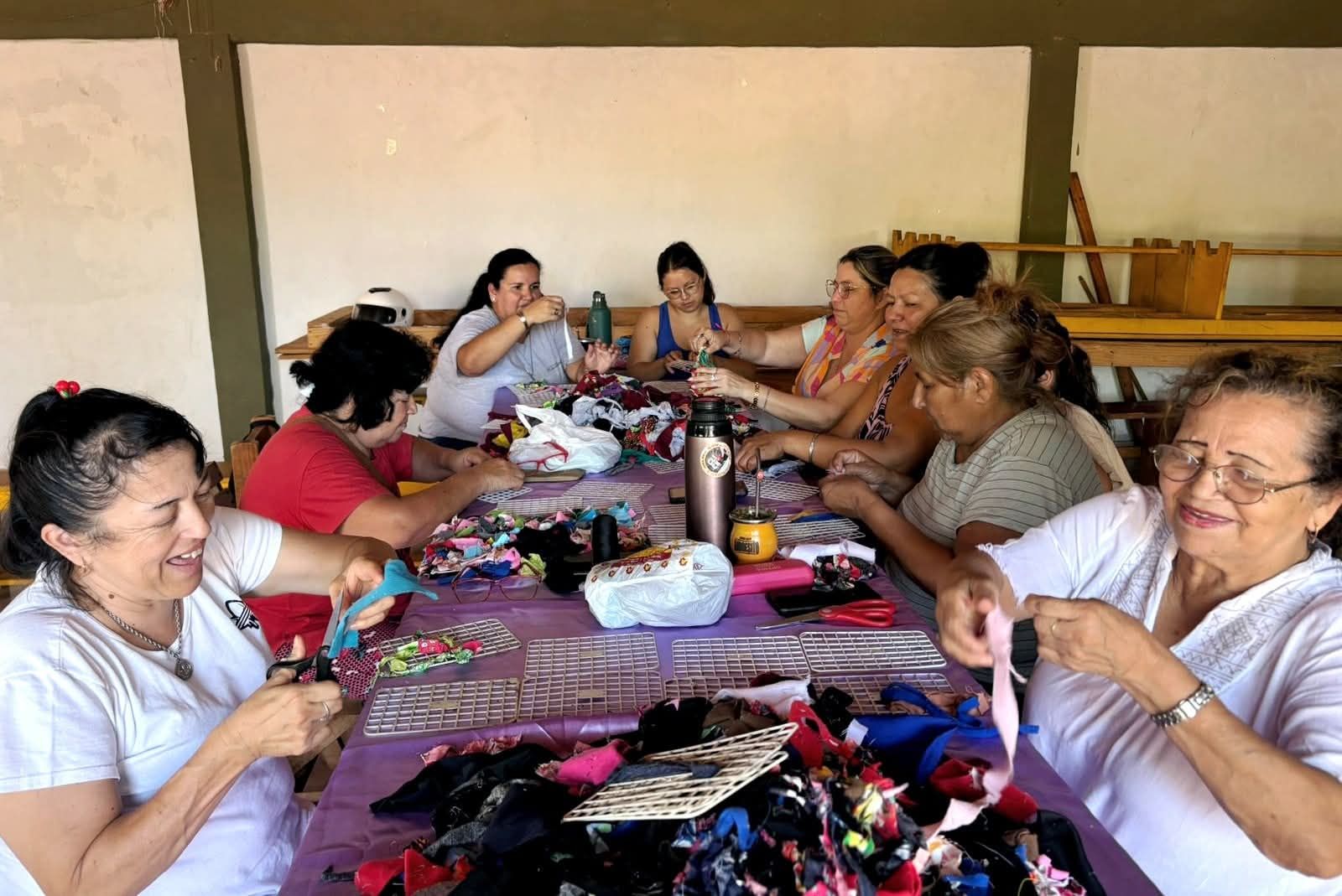 La actividad reunió a mamás del barrio Hermoso, quienes participaron con entusiasmo llevando tijeras, retazos de tela y prendas en desuso para desarmar y transformar en nuevas creaciones. La jornada se desarrolló en un clima de compañerismo y creatividad, fortaleciendo los lazos comunitarios.