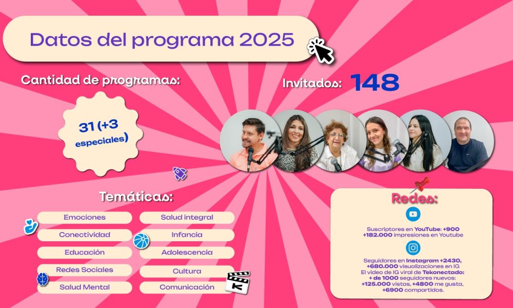 El programa se consolidó como un espacio donde convergen voces distintas para pensar lo que nos pasa como sociedad: el impacto de la globalización cultural, el rol de la tecnología, los cambios en la escuela, la potencia del arte comunitario, la importancia de la soberanía digital, los valores en los videojuegos, la responsabilidad al comunicar, y el desafío de aprender siempre.