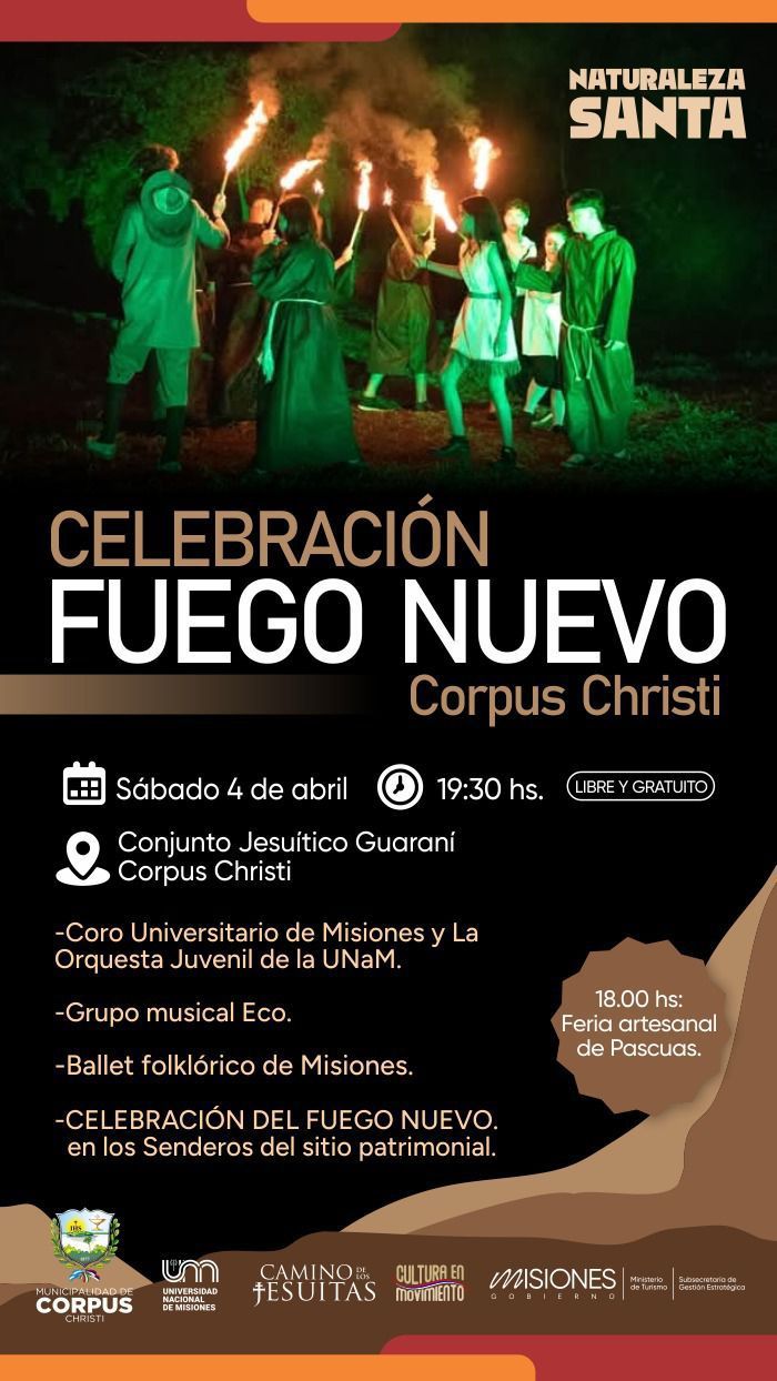 La comunidad de Corpus Christi se prepara para recibir este sábado la celebración del Fuego Nuevo, un ritual de música barroca, teatro y tradición. El evento se desarrollará en los Conjuntos Jesuíticos Guaraníes, a partir de las 19:30, con acceso libre y actividades abiertas a toda la familia.