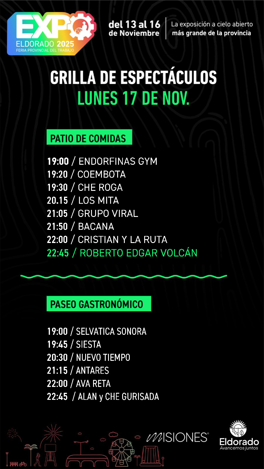 Debido a las inclemencias climáticas del domingo, Victor Bareiro desde la organización de la Expo Eldorado en comunicación con ANG y Multimedios Génesis informó que la última jornada del evento se realizará hoy, en un formato especial y adaptado para garantizar la seguridad y el disfrute de todos.