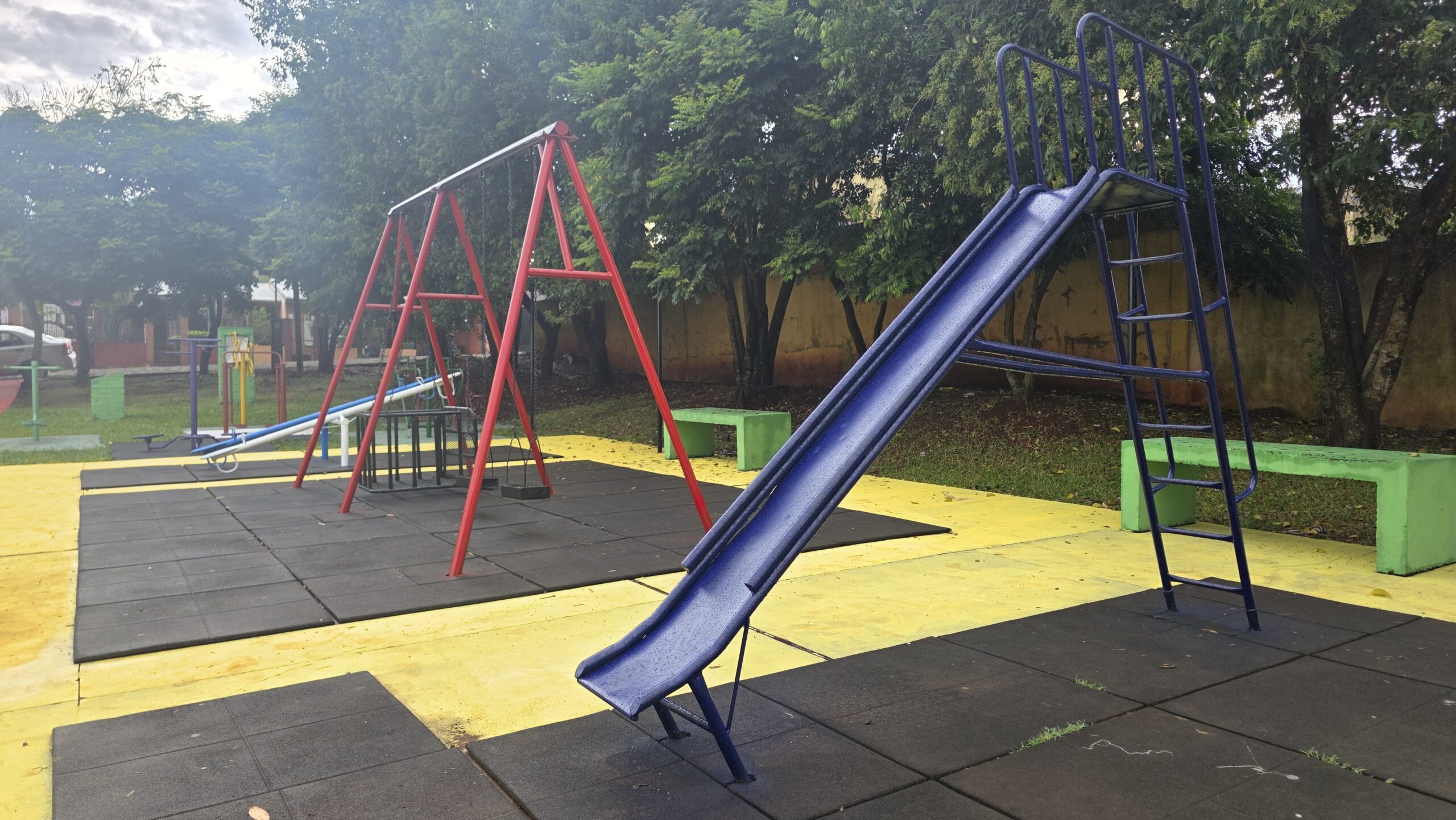 La Municipalidad de Leandro N. Alem lleva adelante trabajos de puesta en valor en la plaza del barrio Juan Pablo II, donde se ejecutan tareas de pintura en los juegos infantiles, reparaciones de estructuras y mantenimiento general del predio.